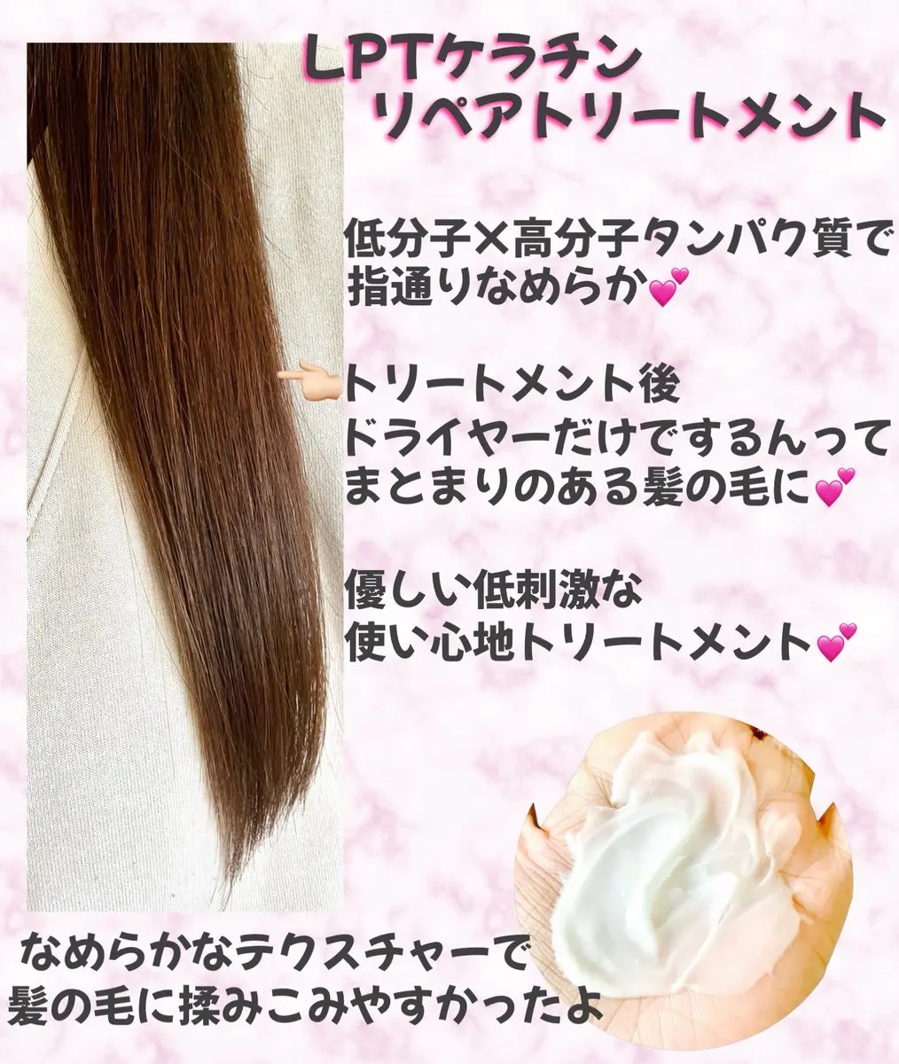 DaleafLPTケラチンリペアトリートメント♡まるでサロン帰り♡ブリーチやパーマによるハイダメージ髪の方にオススメ。髪の毛にLPTタンパク質をたっぷりと満たし、サラツヤ髪に💖とってもかわいいパッケージ🎀髪に浸透しやすいタンパク質を配合して、...