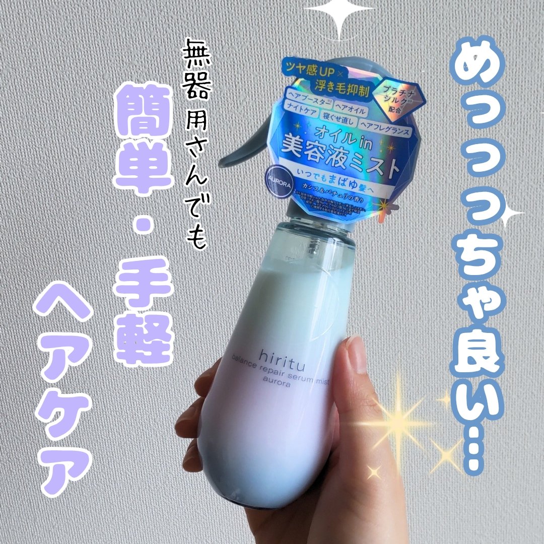 \1本で5役の多機能なヘアミスト/hirituバランスリペアセラムミストオーロラヘアブースター、ヘアオイル、寝癖直しなどさまざまな使い方ができるヘアミスト!オイルインでしっとりとした使い心地。ぴょんぴょん出る浮き毛を抑えることができ、しっとり...