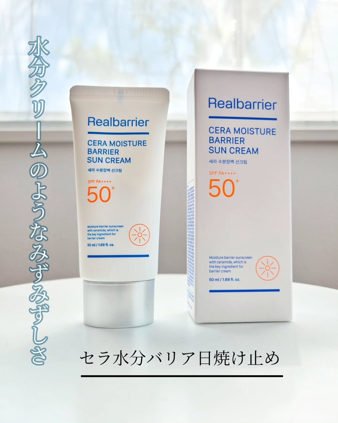 \リアルバリアセラ水分バリア日焼け止め/見た目以上に柔らかいクリームで昨日投稿した"エクストリームクリーム"を優しくなめらかにした感じの日焼け止め🧴✨"セラ水分バリア"という名前の通り"水分"をしっかり感じられるクリーム勿論白浮きもないし使い...