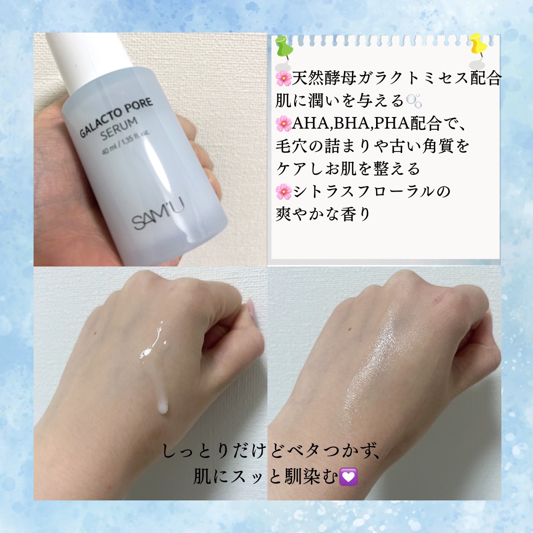 #PRSAM'U公式アンバサダーとしての初投稿です❕🩵ガラクトポアセラム🩵低刺激処方で優しく皮脂や古い角質などの毛穴悩みをケア🥺とろみがあるけど肌なじみがよく、塗るとみずみずしい✨保湿力もありながらベタつかないから使いやすい👍#samu#サミ...