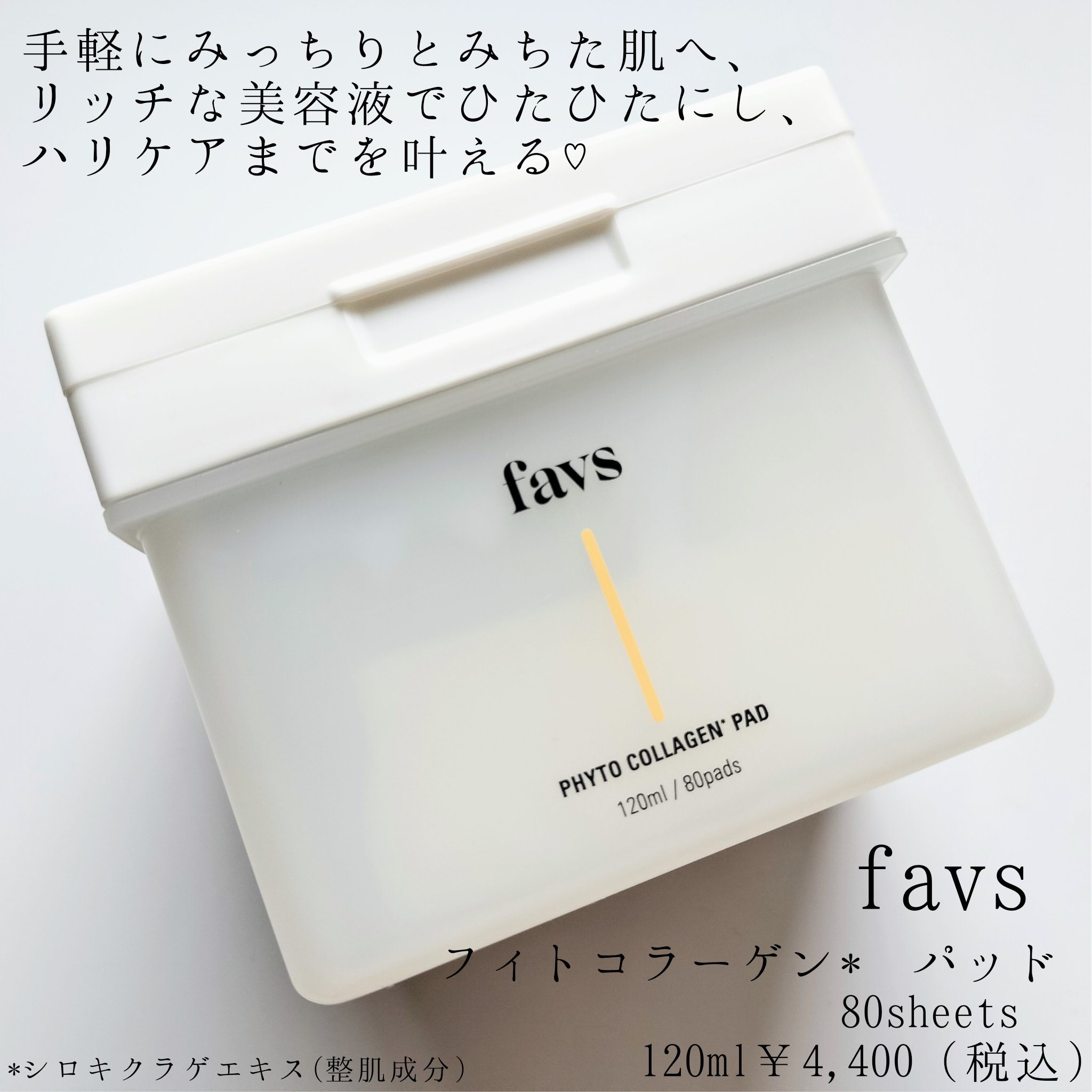 なんと言っても肌あたりが良いパッド💡大人肌のわがままを叶えるエイジングケア*美容液パッド。favsフィトコラーゲン**パッド80sheets120ml¥4,400(税込)水分吸収率と通気性に優れたクロスホールタイプのピュアコットン素材を採用☝...