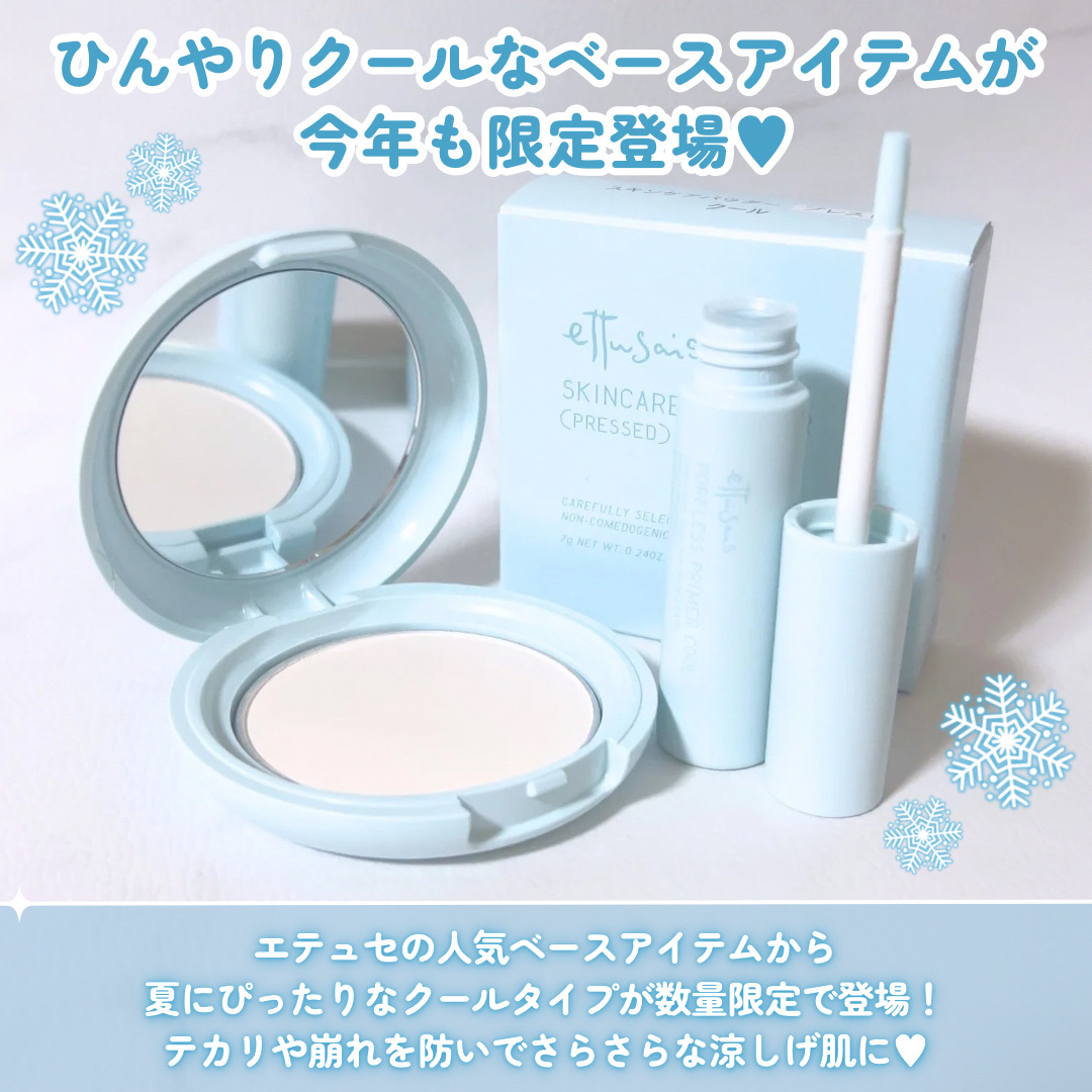 【限定新作♡エテュセのひんやりクール!】ひんやりベースメイクが叶う!プライマースキンケアパウダーが数量限定で登場♡かる〜いテクスチャーで薄膜密着するプライマーはテカリを抑えてマットな仕上がり♪パウダーはふんわり溶け込むような粉質でさらさらのツ...