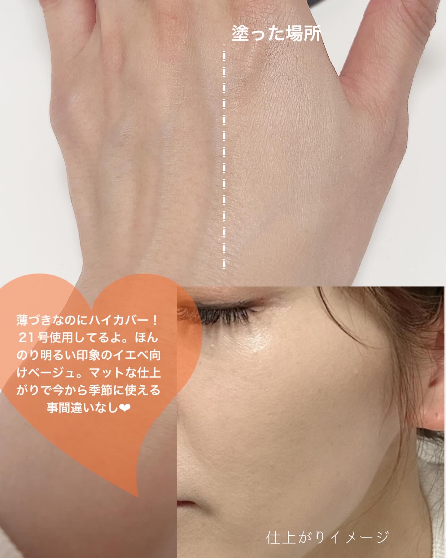 美白*ケアしながら、密着シミカバーファンデーションのご紹介です。 カバー力が高くマットな使用感ですが、素肌っぽさは、ちゃんとあるいい感じの仕上がり! テカリやすい混合肌だけど、マットタイプのおかげでパウダーなくても大丈夫だったよ😊