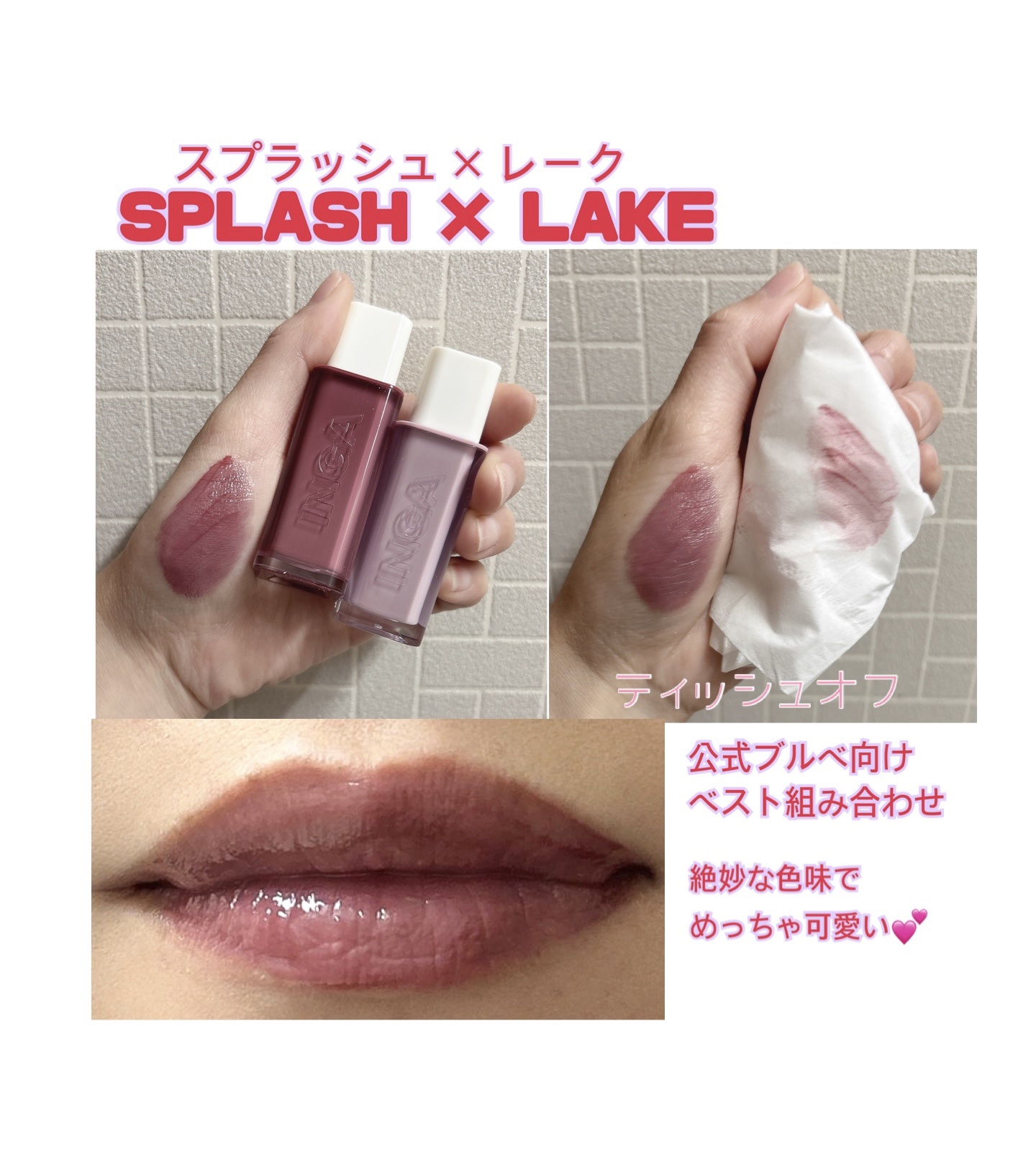 INGA様の「WATERGLOWLIPTINT(SPLASH・LAKE)」をお試しさせて頂きました(*ˊ˘ˋ*)✨パーソナルカラーで選べる13色展開‼️だから自分の好みのカラーがきっと見つかる😍私は、今回ブルベカラーであるスプラッシュとレーク...