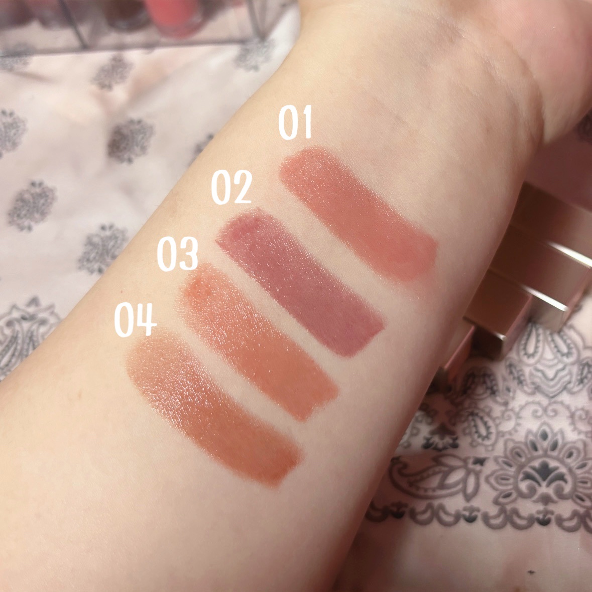 Ririmew リリミュウ バタールージュ <Color Variation> 01 ムースピンク 02 マーメイドプラム 03 アプリコットファッジ 04 ベアオレンジ #新作コスメ #リップ #指原莉乃 #ブルベ夏 #ブルベ冬 #イエベ春 #イエベ秋 #プチプラコスメ #コスメレビュー