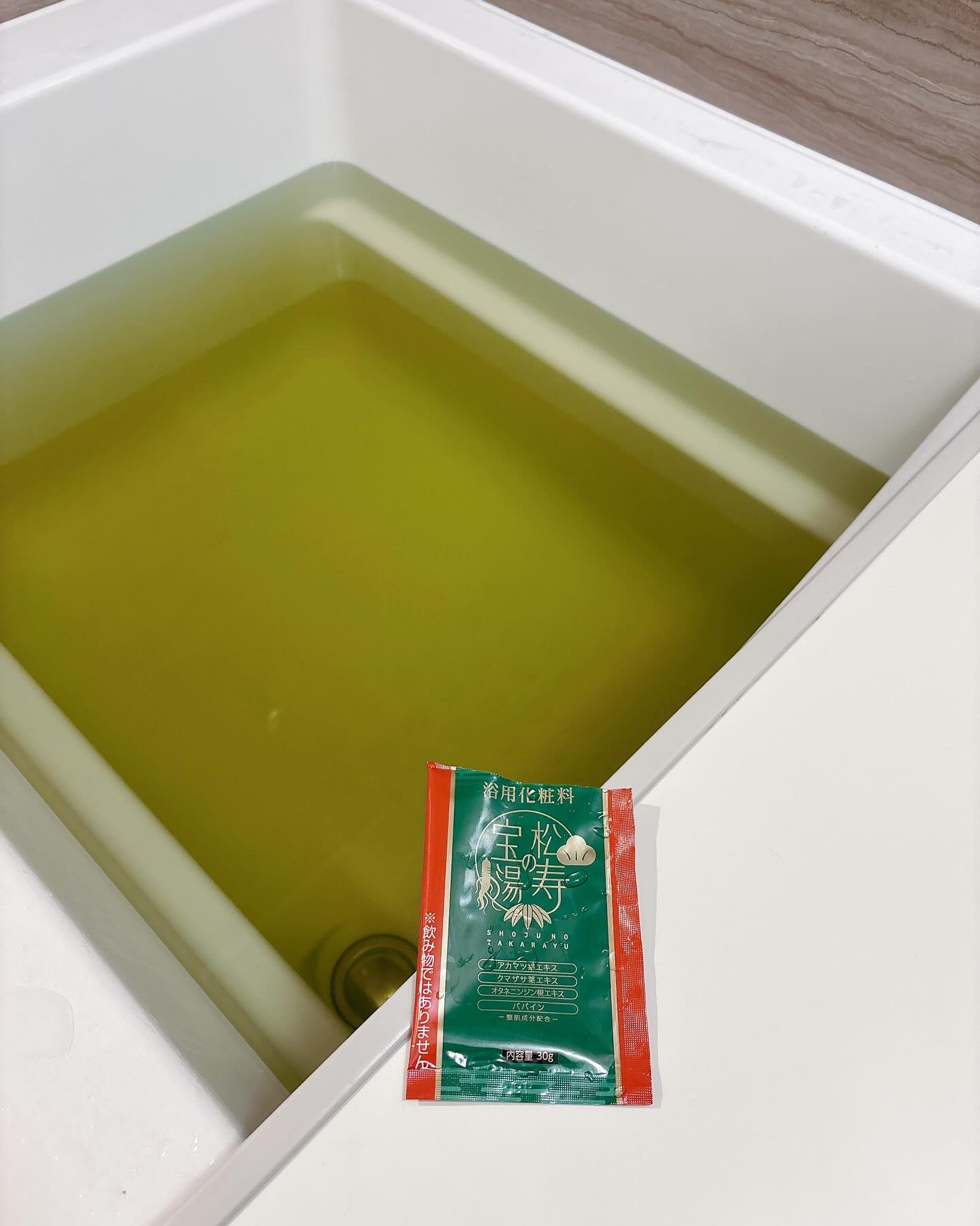 医薬品製造会社の和漢薬研究所の入浴剤、松寿の宝湯(しょうじゅのたからゆ)♨木々の清らかな香りで、森林浴をしているような気持ちになれます🌳すごく落ち着いた気分になれて、気持ちがゆったりします。湯色は緑茶のような鮮やかな緑色です🌿#PR#和漢薬研...
