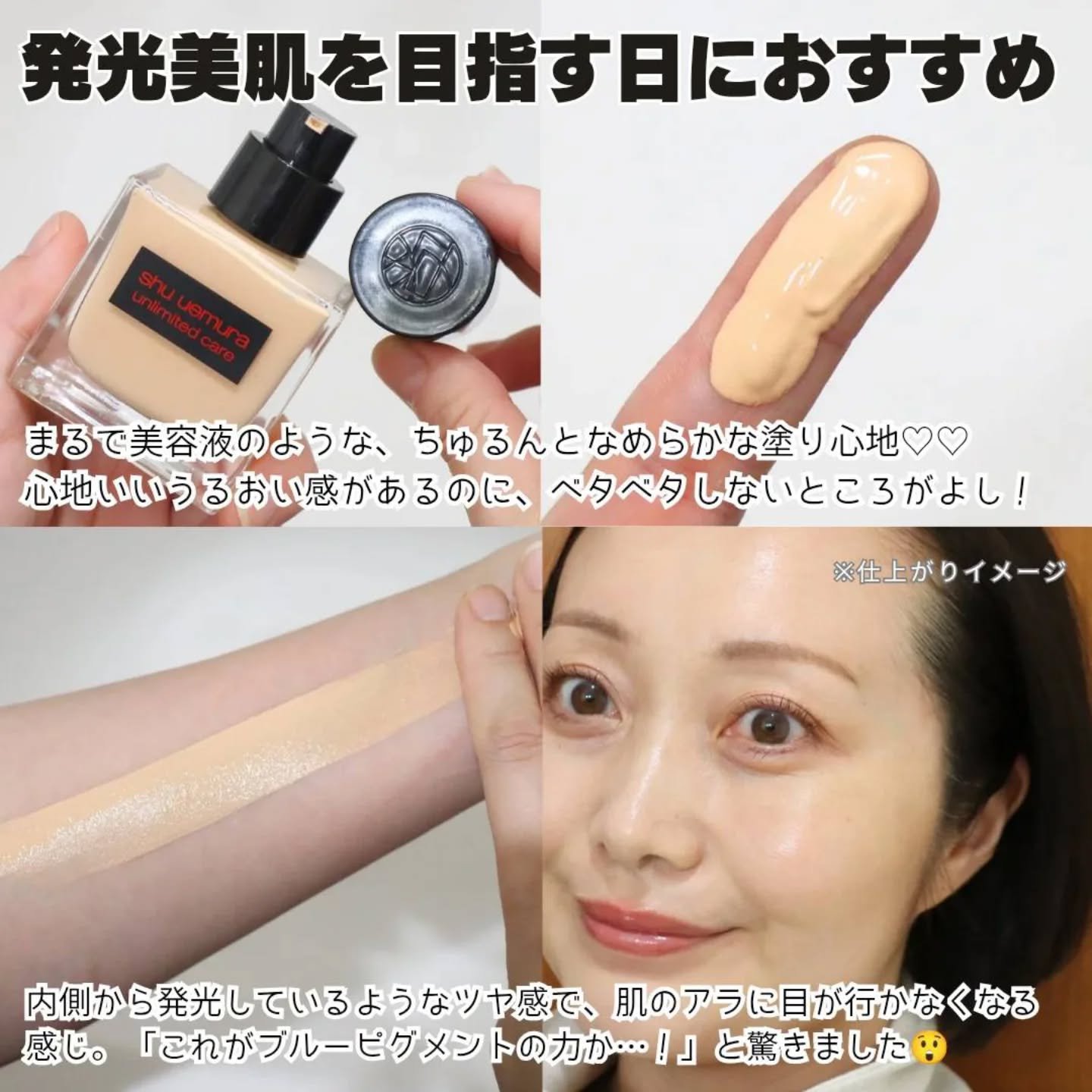 ロレアル主催のイベント【BeautyShoutOut】でいただきました𓂃◌𓈒𓐍·.⟡⟡.·シュウウエムラアンリミテッドケアツヤセラムファンデーション(使用カラー574)·.⟡⟡.·\光反射で肌悩み飛ばす*⁉️青のファンデ/発売後ベスコスも多く...