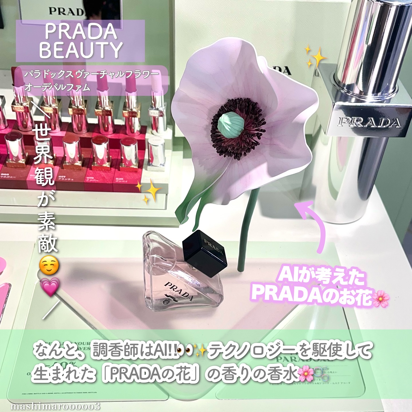 #PR#プラダビューティーロレアル主催のイベントに招待頂きました。\華やか&爽やか&甘さの共存/【PRADAパラドックスヴァーチャルフラワーオーデパルファム】☑️30mL:13,420円プラダがAI技術を駆使して再解釈したフローラルムスクの香...