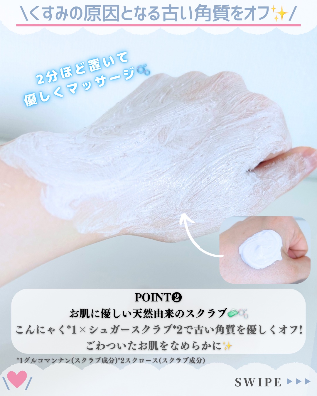 | スクラブランキング第133位 | 生クリーム半立てくらいな感じで ふわふわです!洗い上がり、何も塗らなくても大丈夫なくらい しっとりしてました! | 詳細を見る | |