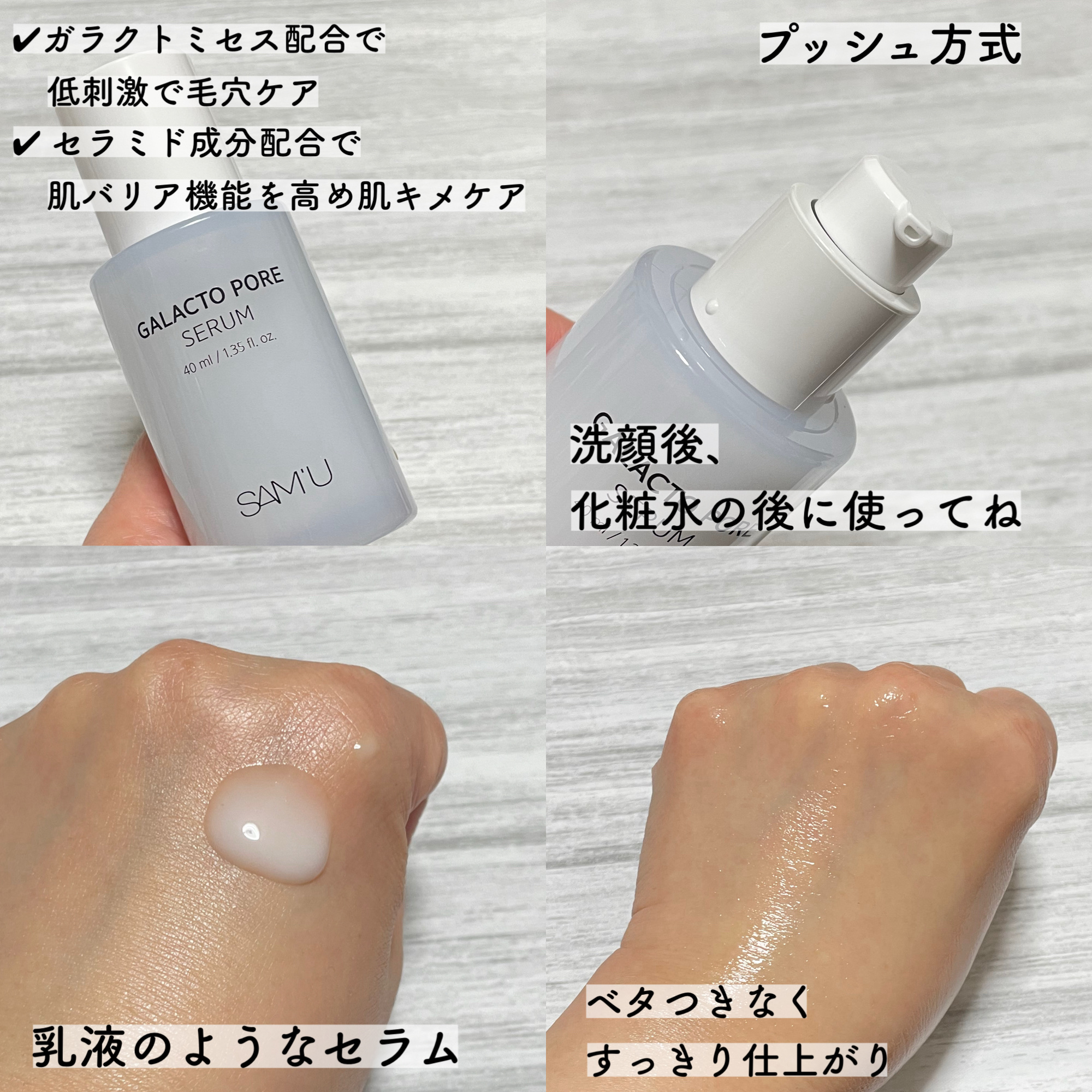 SNSで話題のセラムガラクトポアセラム✨SAM'U(サミュ)アンバサダーで活動中です今回の投稿は「ガラクトポアセラム」を紹介します☺️SAMU(サミュ)@sam_u_jpガラクトポアセラム40ml🤍おすすめポイント♡ガラクトミセス配合で低刺激...
