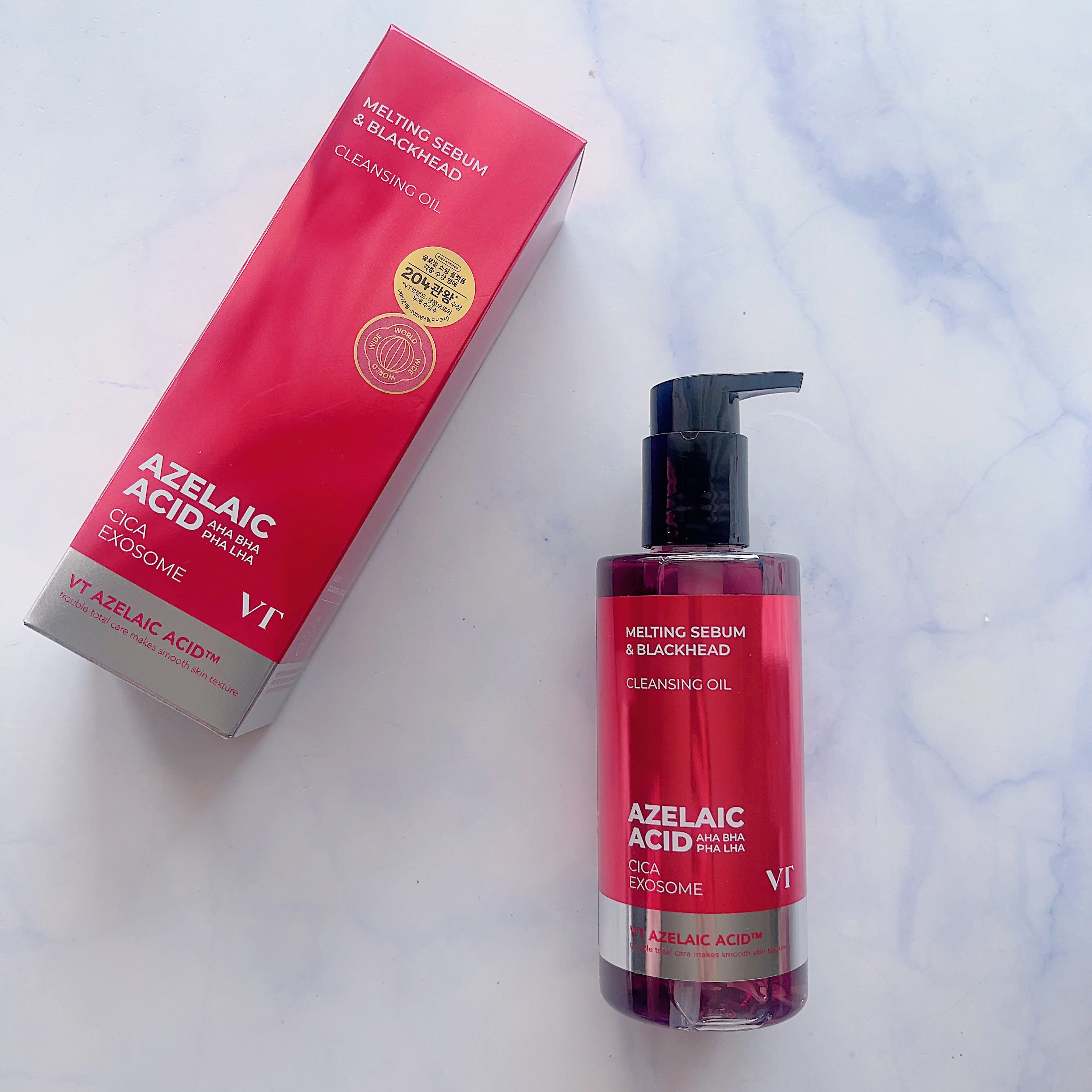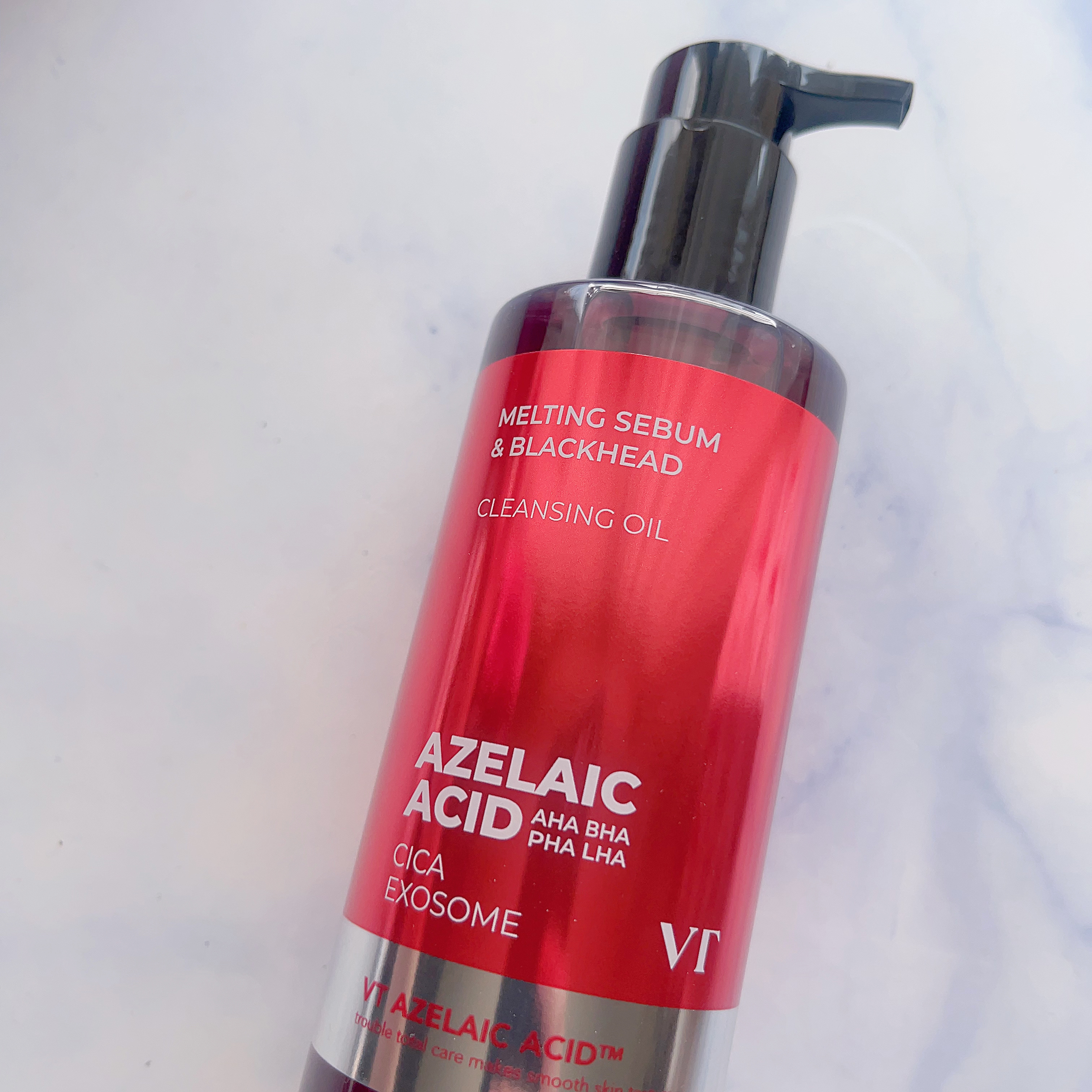 - 最近話題の毛穴ケア・整肌成分アゼライン酸!VTからはクレンジングオイルが登場! ポイントメイクまで落とすしっかりした洗浄力で、毛穴・皮脂までケアし保湿まで叶える一石三鳥アゼライン酸クレンジングオイル。 19種の植物性オイル*1も配合で、目に見えるブラッドヘッド*2から、隠れているホワイトヘッド*2、皮脂まですっきりケアします! ダブル洗顔不要! ※パッケージリニューアル ■このような方へおすすめ メイク・毛穴までディープクレンジング求める方 クレンジングでスキンケアまで行いたい方 ツッパリ感の少ないクレンジングを探していた方 ブラックヘッド*ケアも行いたい方 *1ダイズ油、アルガニアスピノサ核油、ユズ果実油、コメヌカ油、オタネニンジン種子油、アーモンド油、ザクロ種子油、リンゴ種子油、ホホバ種子油、ツバキ種子油、、バオバブ種子油、ユチャ種子油、ベニバナ種子油、ヒマワリ種子油、ヒポファエラムノイデス油、オリーブ果実油、アボカド油、アンズ核油、クロフサスグリ種子油(いずれも保湿) *2古い角質による