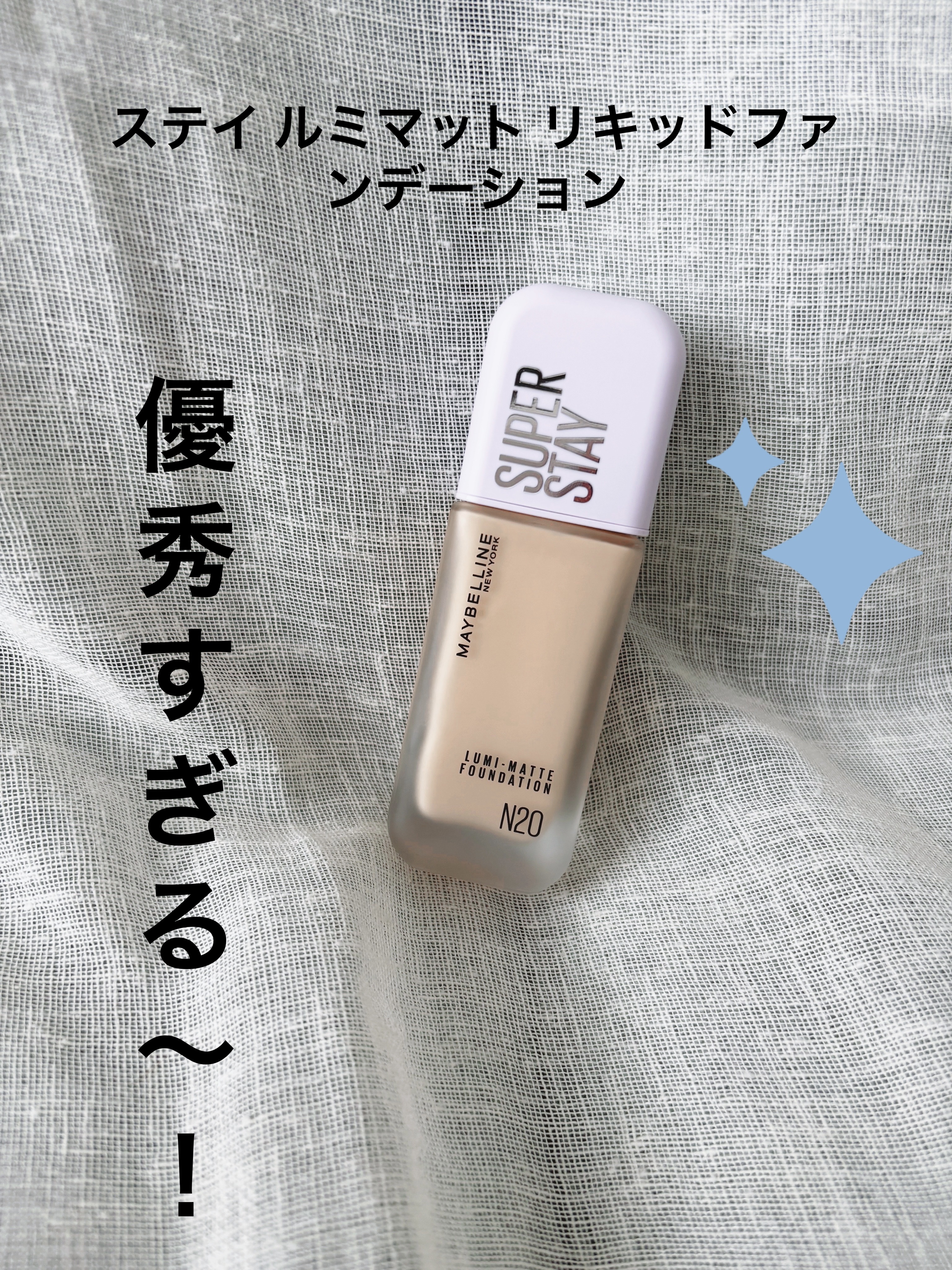 - パッケージリニューアル 超うす膜ファンデ 30時間*1。 ノーファンデ感覚なのに、素肌美、爆盛れ ①リアルスキンフィルム処方を採用。 超うす膜で崩れにくく、肌にぴたっと密着。 ②毛穴レス印象*2で、なめらかなルミマット肌 気になる毛穴、色ムラをしっかりぼかして*2、 ナチュラルに光をまとうルミマット肌に ③約半プッシュで全顔OK! 少量を素早くなじませて 1)少量をとる。約半プッシュで全顔OK! 2)素早く伸ばして、馴染ませる。 3)さらにカバーしたい部分には、重ね塗りする。 *1 メイベリン ニューヨーク調べ。個人差があります。 *2 メイクアップ効果による。