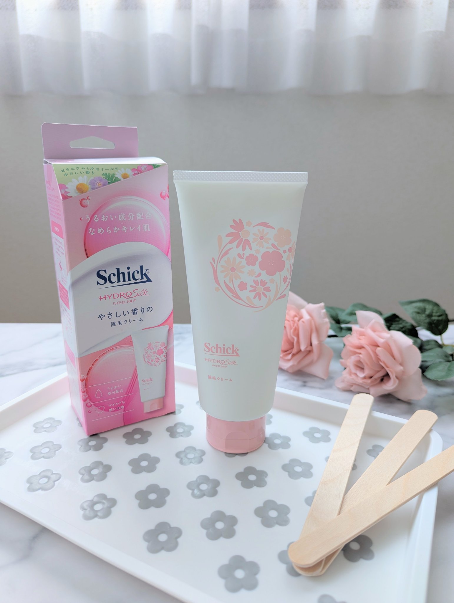 アットコスメさんのキャンペーンでシックハイドロシルク除毛クリーム頂きました✧••✧シックハイドロシルク除毛クリーム✧••✧パッケージホワイト×ピンク付属品木製のヘラ3本香りゼラニウム×カモミールの香り使い方適量を除毛する部分に出し、付属のヘラ...
