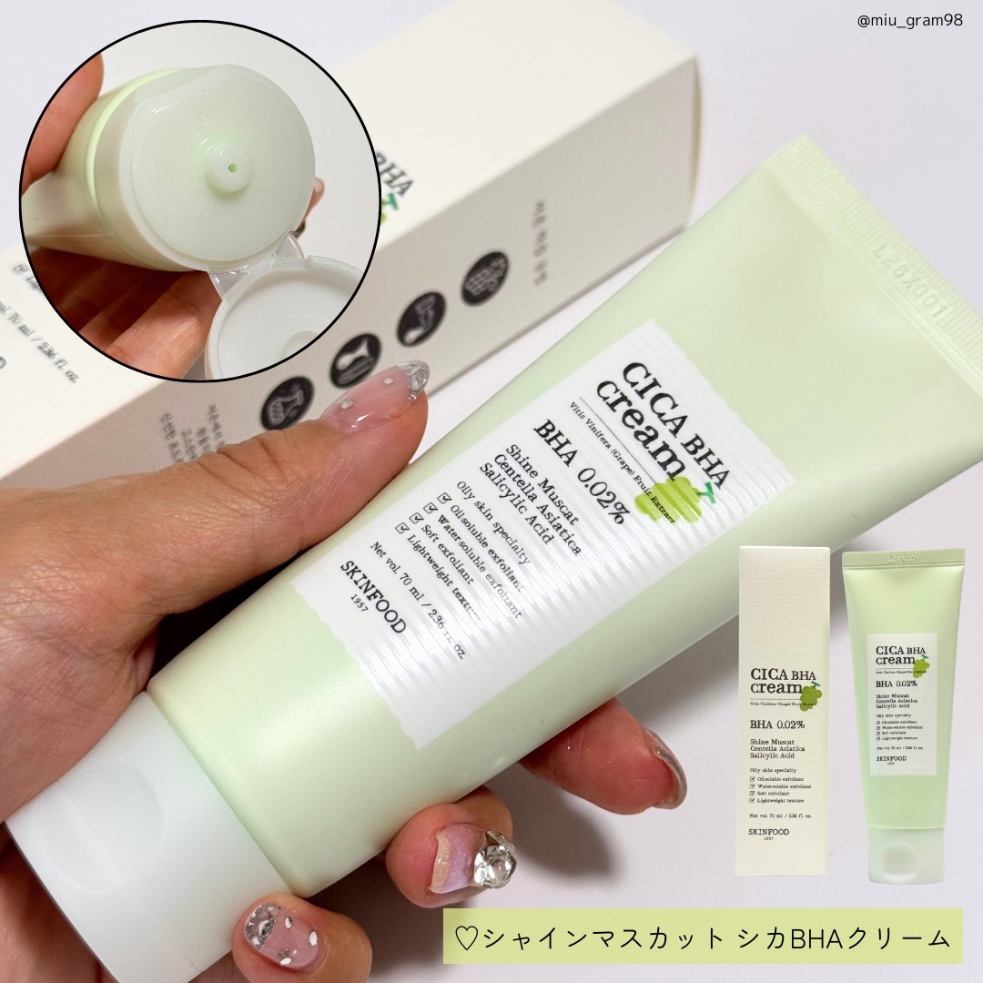 SKINFOODスキンフード@skinfood_japan様よりご提供頂きました♪SKINFOODサポーターズMATE投稿です💚どんどん暑くなる季節にピッタリ✨シャインマスカットエキス&BHA成分で角質、皮脂ケア❗️敏感肌や荒れた肌にたっぷり...