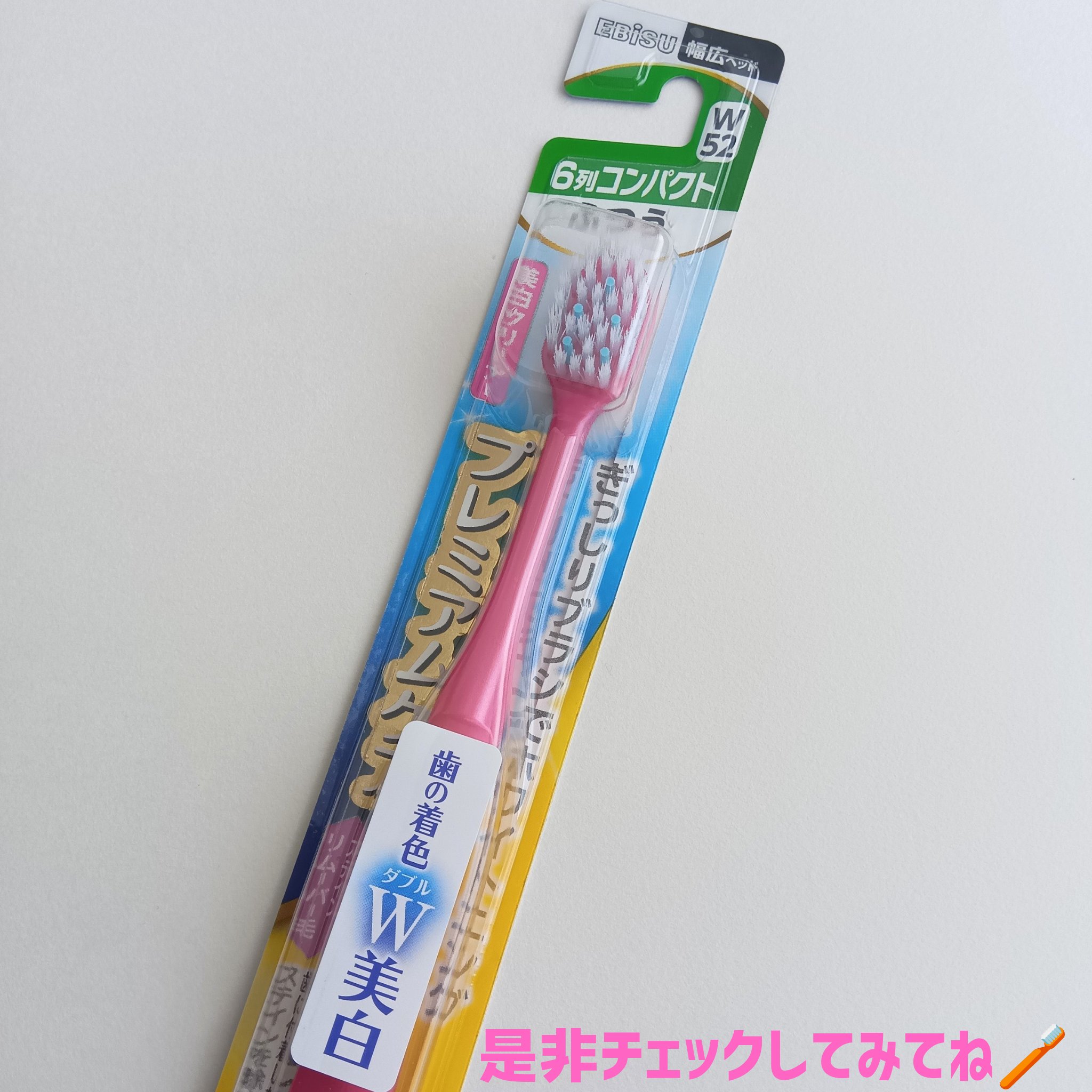 毛のしっかり感と洗い上がりのつるつる感‼️ プレミアムケアシリーズはヘッドの大きさ、ブラシの固さ、5列、6列、など種類が多いので好きな形が選べるのも特徴です😳 毛がぎっしりでしっかり汚れが取れます ツルツルで磨き残し無し(歯石が気にならない‼️) 持つ部分は持ちやすい形でゴム製なので滑らない 今回の種類は、歯石除去にむいているので少しブラシは固めに感じます‼️ (やわらかめも有ります)