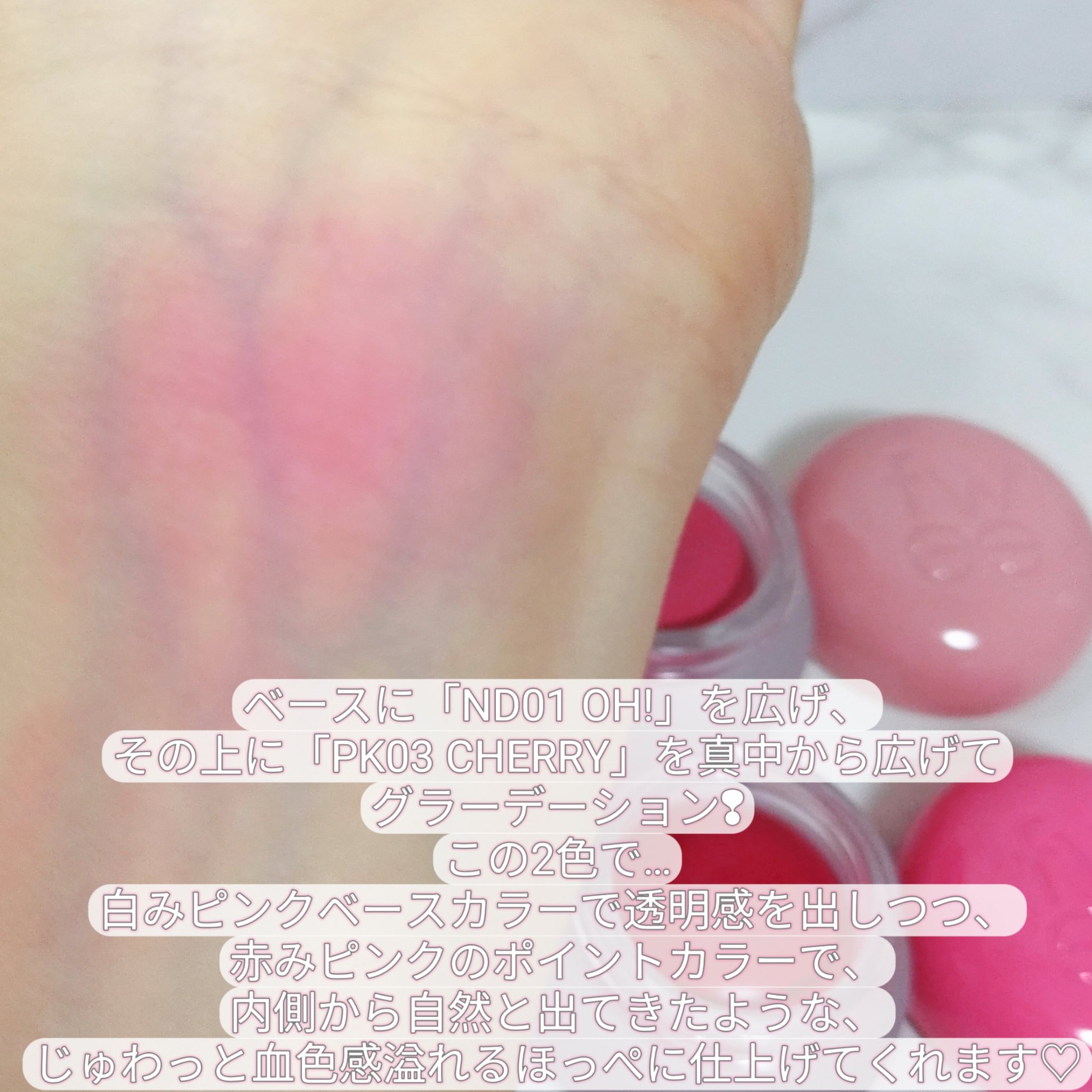 - リップからチークまで幅広く使用できる。 境界線なくなめらかに広がる#ブラースマージング効果で、ナチュラルなオーバーリップ、グラデーションリップから染めたように柔らかいチークまで演出が可能です。 水分たっぷりのプリンテクスチャーとブラーパウダーが出会い、唇も心地よく凹凸をなめらかに*してくれます! * メイクアップ効果による