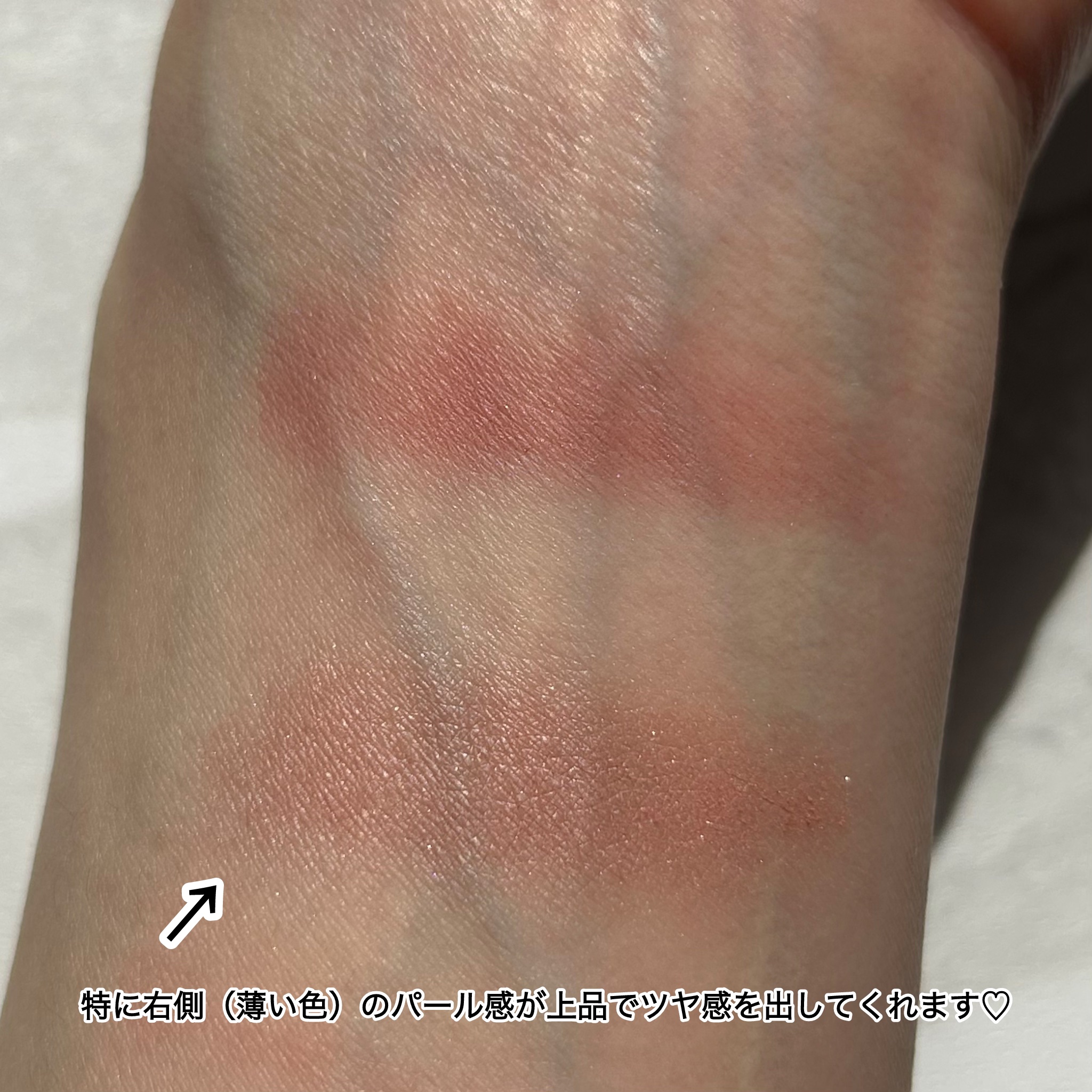 繊細な粉質で上品な艶感のチーク。2色でグラデーションが作りやすく、艶感の強さの調整もしやすい 101はやや青みの大人っぽさのあるローズピンク。ほんのりベージュ感があって甘すぎずどんなメイクにも合わせやすい! 大人顔の方やくすみがいけるブルべ夏にイチオシ🩷