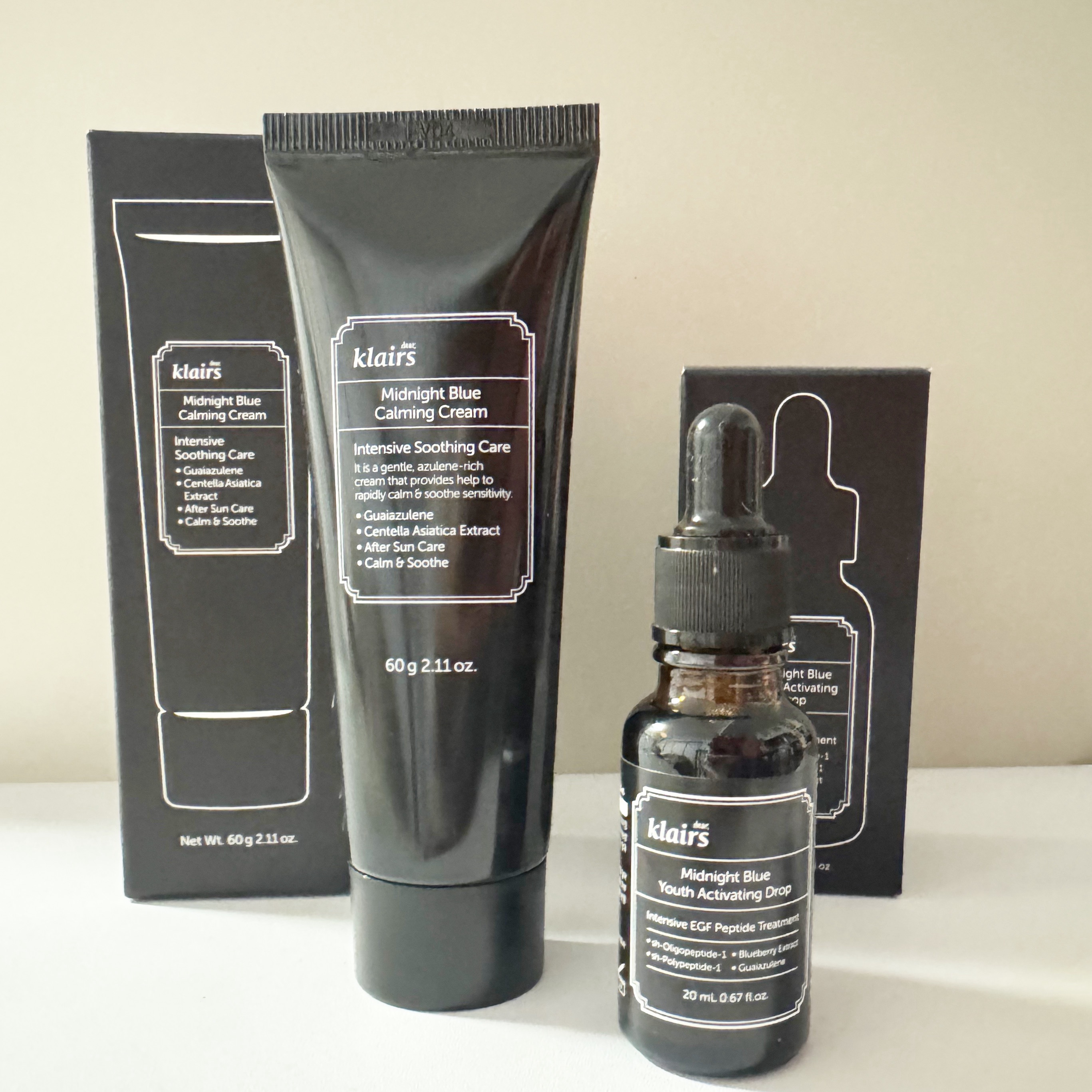#PR#クレアス@klairs.jpクレアスのミッドナイトブルーセット🖤ニキビ、赤みなどの肌悩みに集中&デイリーケア!2つともグアイアズレン*配合!青色はグアイアズレン*の色💙*カモミールオイルから抽出した植物成分の天然原料。ミッドナイトブル...