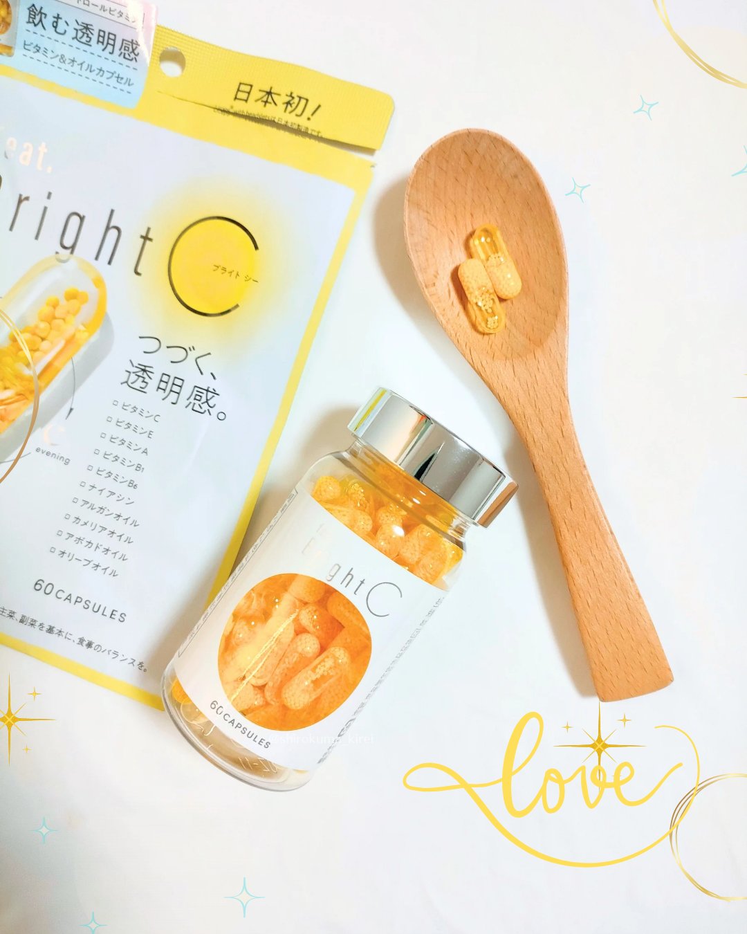 6種類の美容ビタミンと4種類の飲む美容オイルを厳選したサプリメント!💛 日本初のカプセル&ビーズ技術で、8時間かけてゆっくりと溶け出すようになっているみたいだよ! ビタミンCだけではなく他のビタミンや美容オイルを一緒に接種できるのは嬉しい!