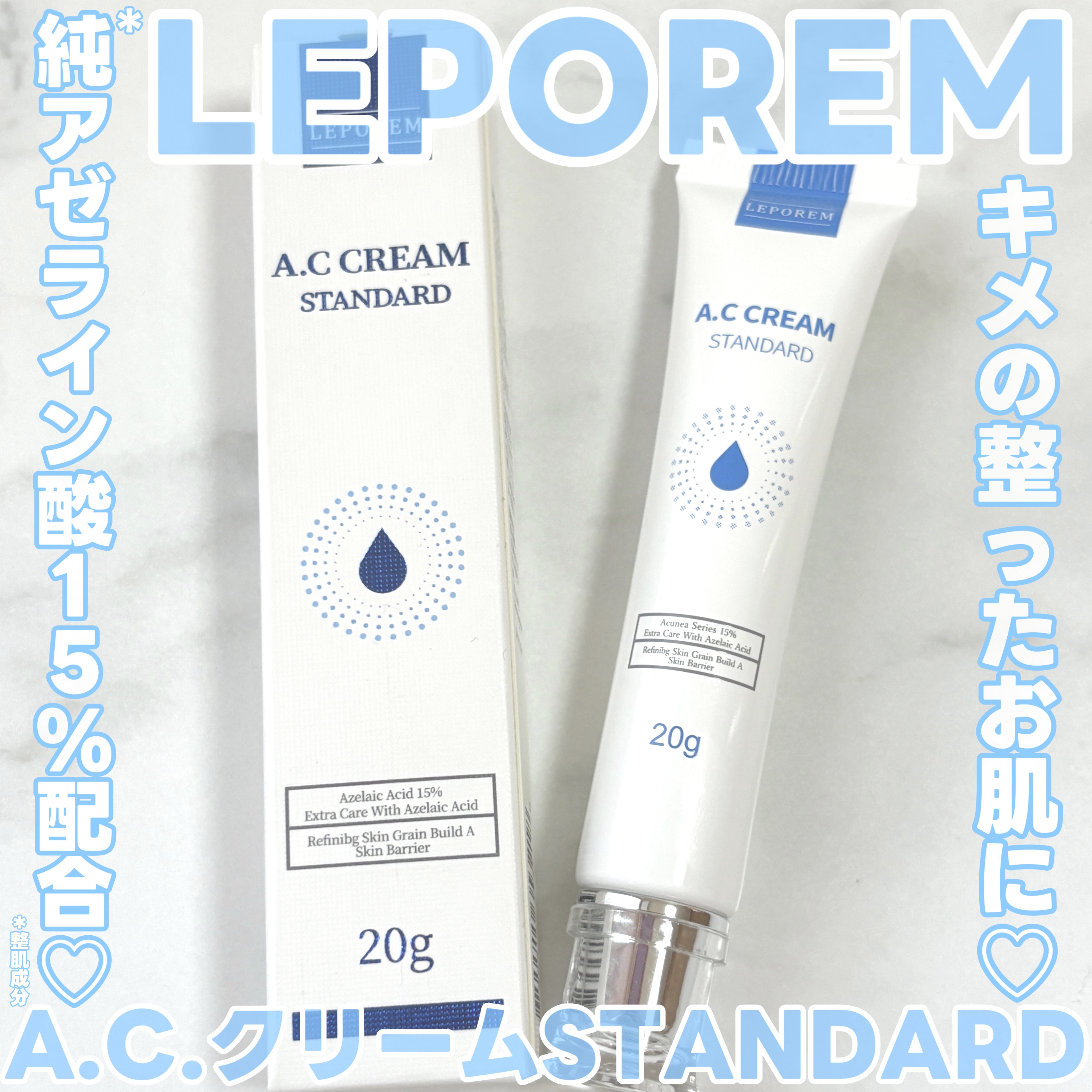 ■アゼライン酸*15%配合!肌荒れ防止なめらかジェル■LEPOREMA.C.クリームSTANDARDルポレム様にいただいたアゼライン酸クリームです!ルポレムは今話題のアゼライン酸*を日本ではじめて市販で売り出したブランドです😲ACUNEAシリ...