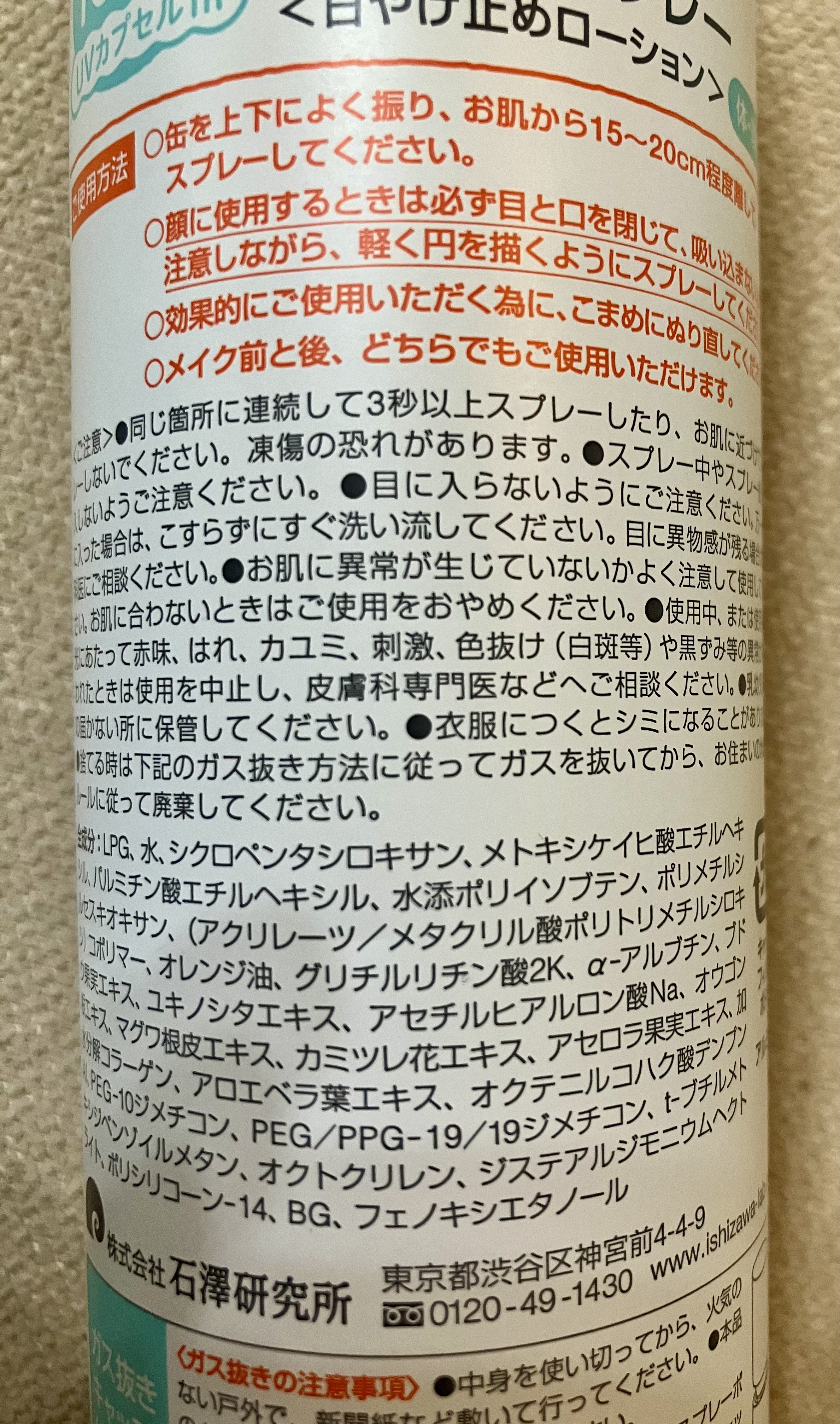 - <60g> LPG、水、シクロペンタシロキサン、メトキシケイヒ酸エチルヘキシル、パルミチン酸エチルヘキシル、水添ポリイソブテン、ポリメチルシルセスキオキサン、トリメチルシロキシケイ酸、オレンジ油、グリチルリチン酸2K、α-アルブチン、ブドウ果実エキス、ユキノシタエキス、アセチルヒアルロン酸Na、オウゴン根エキス、マグワ根皮エキス、カミツレ花エキス、アセロラ果実エキス、加水分解コラーゲン、アロエベラ葉エキス、オクテニルコハク酸デンプンAl、PEG-10ジメチコン、PEG/PPG-19/19ジメチコン、t-ブチルメトキシジベンゾイルメタン、オクトクリレン、ジステアルジモニウムヘクトライト、ポリシリコーン-14、BG、フェノキシエタノール <【旧】60g> LPG、水、シクロペンタシロキサン、メトキシケイヒ酸エチルヘキシル、パルミチン酸エチルヘキシル、水添ポリイソブテン、ポリメチルシルセスキオキサン、トリメチルシロキシケイ酸、オレンジ油、グリチルリチン酸2K、α-アルブチン、ブドウ果実エキス、ユキノシタエキス、アセチルヒアルロン酸Na、オウゴン根エキス、マグワ根皮エキス、カミツレ花エキス、アセロラ果実エキス、加水分解コラーゲン、アロエベラ葉エキス、オクテニルコハク酸デンプンAl、PEG-10ジメチコン、PEG/PPG-19/19ジメチコン、t-ブチルメトキシジベンゾイルメタン、オクトクリレン、ジステアルジモニウムヘクトライト、ポリシリコーン-14、BG、フェノキシエタノール