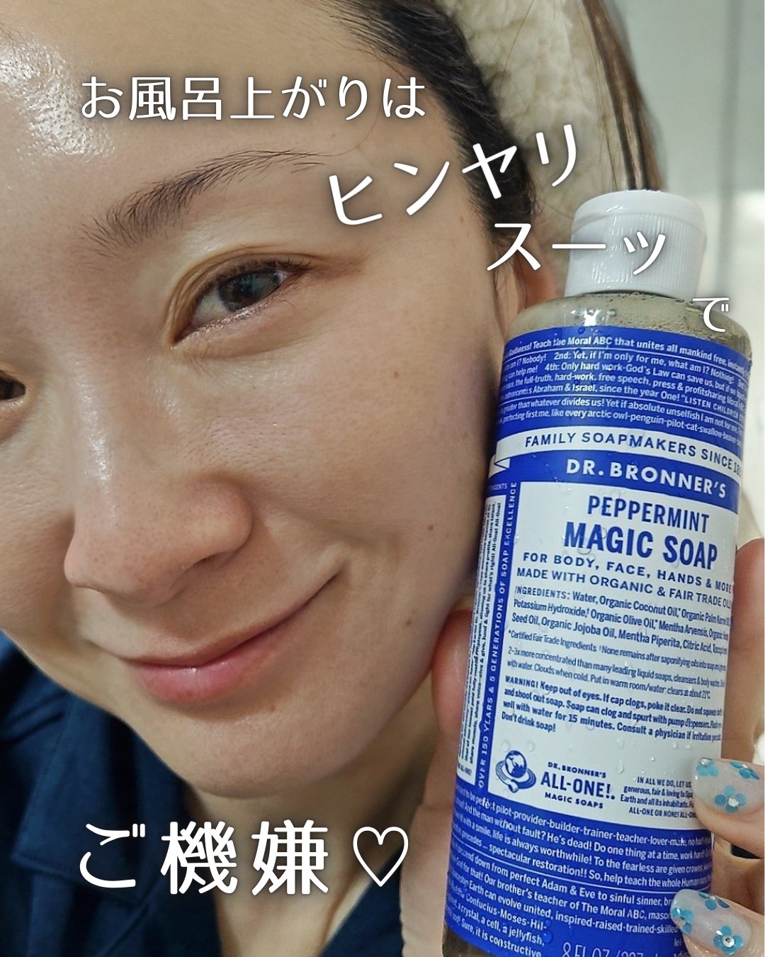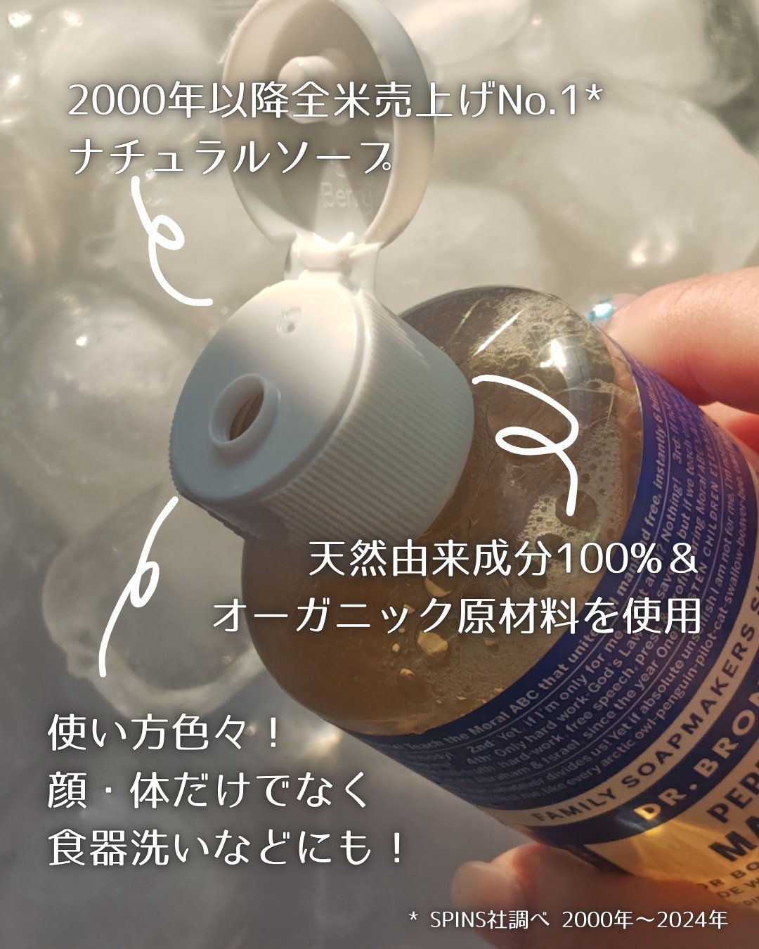 💙🧊お風呂上がりにエアコンいらず!?💦❄️体感-4.2℃でスッキリ爽快✨✨これ1本で顔も体も全身洗える🌱💧#ドクターブロナー#マジックソープペパーミント💙🛁🌿【暑さ対策にもピッタリ!】汗ばむ季節にクールダウンできる爽快ソープ!🚿💦オーガニック...