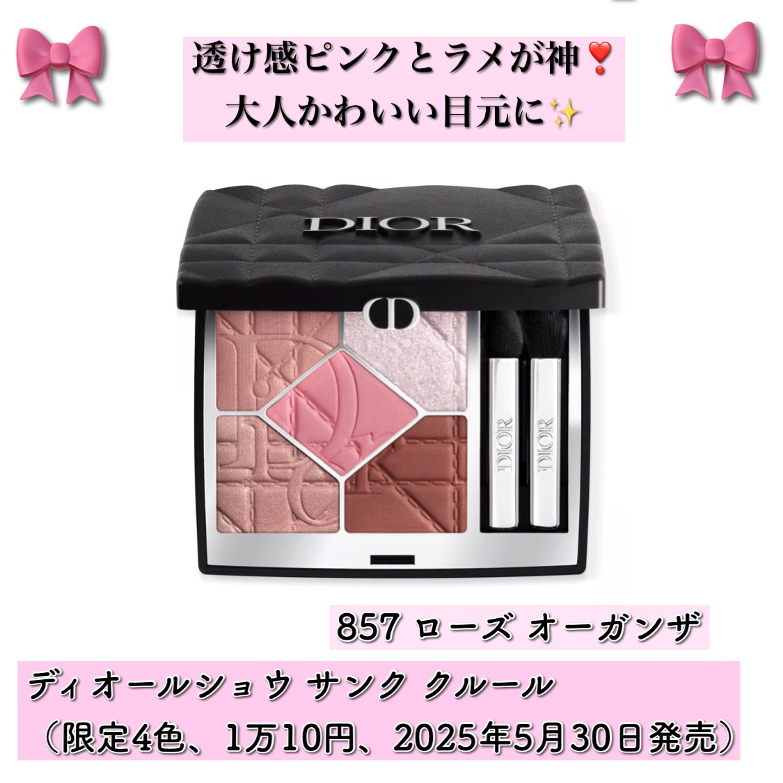 本日5月21日から先行発売❣️Diorの天才ローズ🌹アイシャドウ✨🌸ディオールディオールショウサンククルール🌸限定4種各¥10010(税込)💫857ローズオーガンザ捨て色なしというより、欲しい色が詰まった5色❣️どれがいいではなく、全部良き✨...