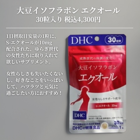 ゆらぎ世代の注目成分💕DHCのエクオールサプリゆらぎ世代の女性のすこやかさと美しさを保つ成分として注目を集めている⳹エクオール⳼大豆イソフラボンの一種であるダイゼインからつくられるので大豆イソフラボンをとればOK!?というわけでもなく…大豆イ...