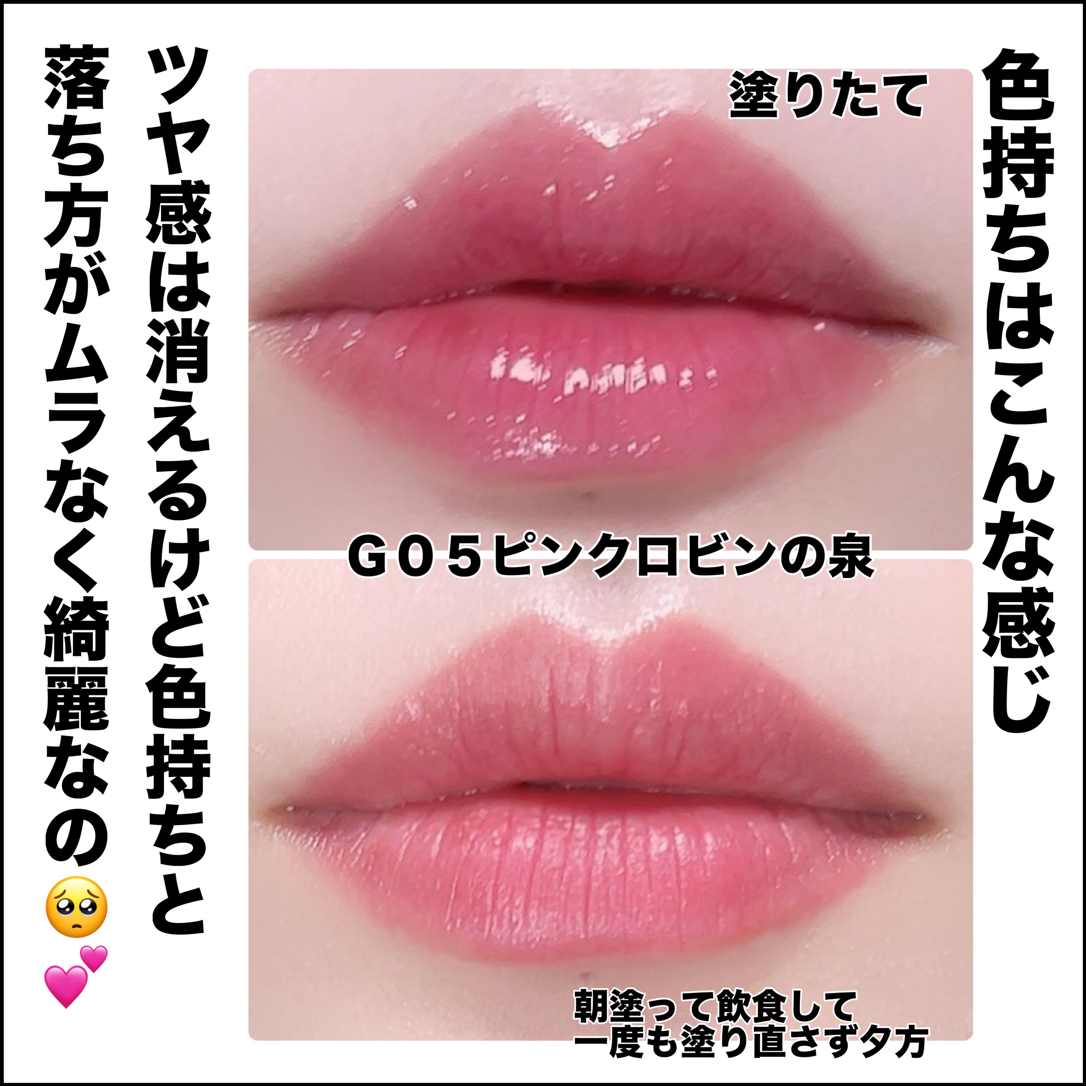 粘膜ピュアピンクがほんとに可愛い🥺 ツヤもしっかりあってジューシーな果実感が いちご飴っぽくて好き🍓♡ 甘すぎる香り苦手な私ですが チェリーブロッサムの香りも 甘ったるすぎず匂い残りもそこまで気になりませんでした😊 シアーなんだけど発色は薄すぎず 一度塗りでもしっかり色味でました◎