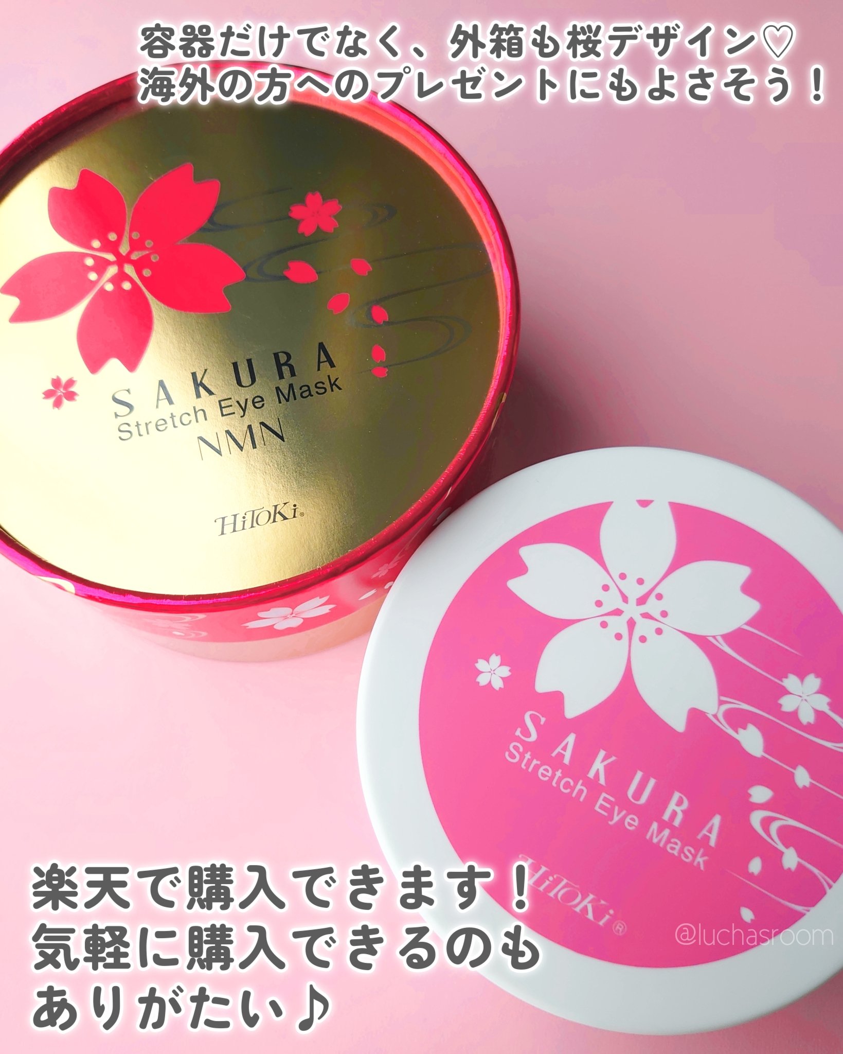 目元にうるおいを届ける、桜ストレッチアイシートマスクのご紹介✨ 厳選された桜のエキスが贅沢に配合されるんだよー🌸 美容液をたっぷり含んでいるから、短時間で集中ケアが出来ちゃうの✨
