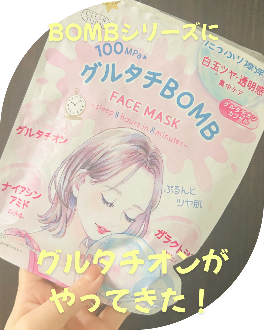#PR#クリアターンクリアターンのBOMBシリーズにグルタチオンが新発売されました𓂃✍️商品名:クリアターン グルタチBOMBマスク容量:7枚入り・白玉※1ツヤ・透明感※2爆弾級★・透明感※2ケア成分配合 グルタチオン・ナイアシンアミド...