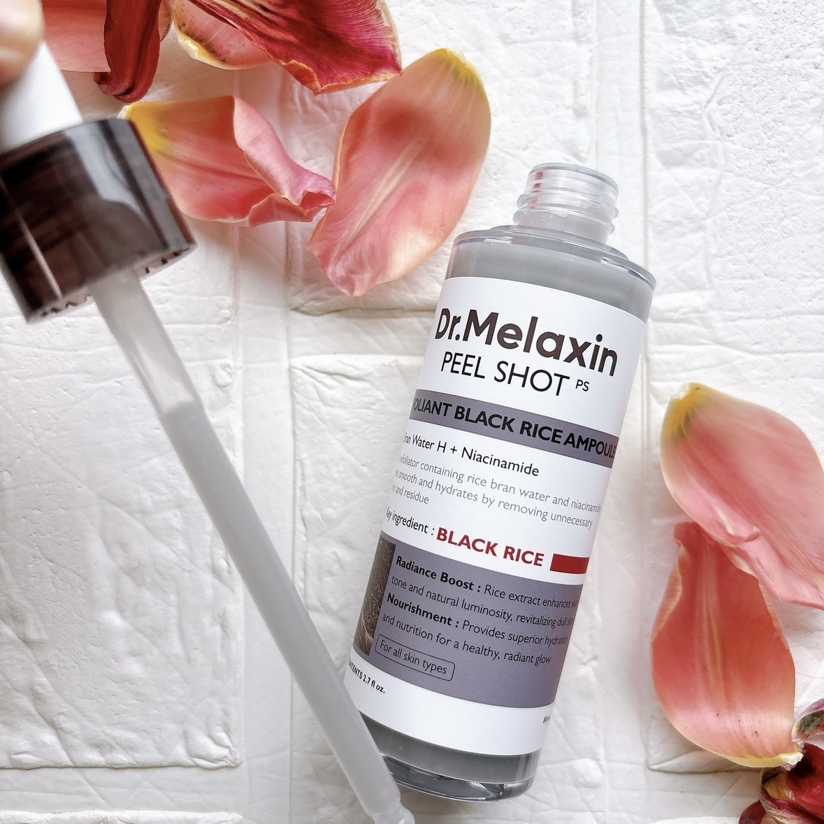 #PRDr.Melaxin白米ピールショットアンプル黒米ピールショットアンプルお米の力で優しくピーリング🌾ピーリングとアンプルを一気に!美容成分の浸透力を高める成分「ペンタライス」と「ナイアシンアミド」を配合し角質ケア後ツヤを与え明るい肌へ✨...
