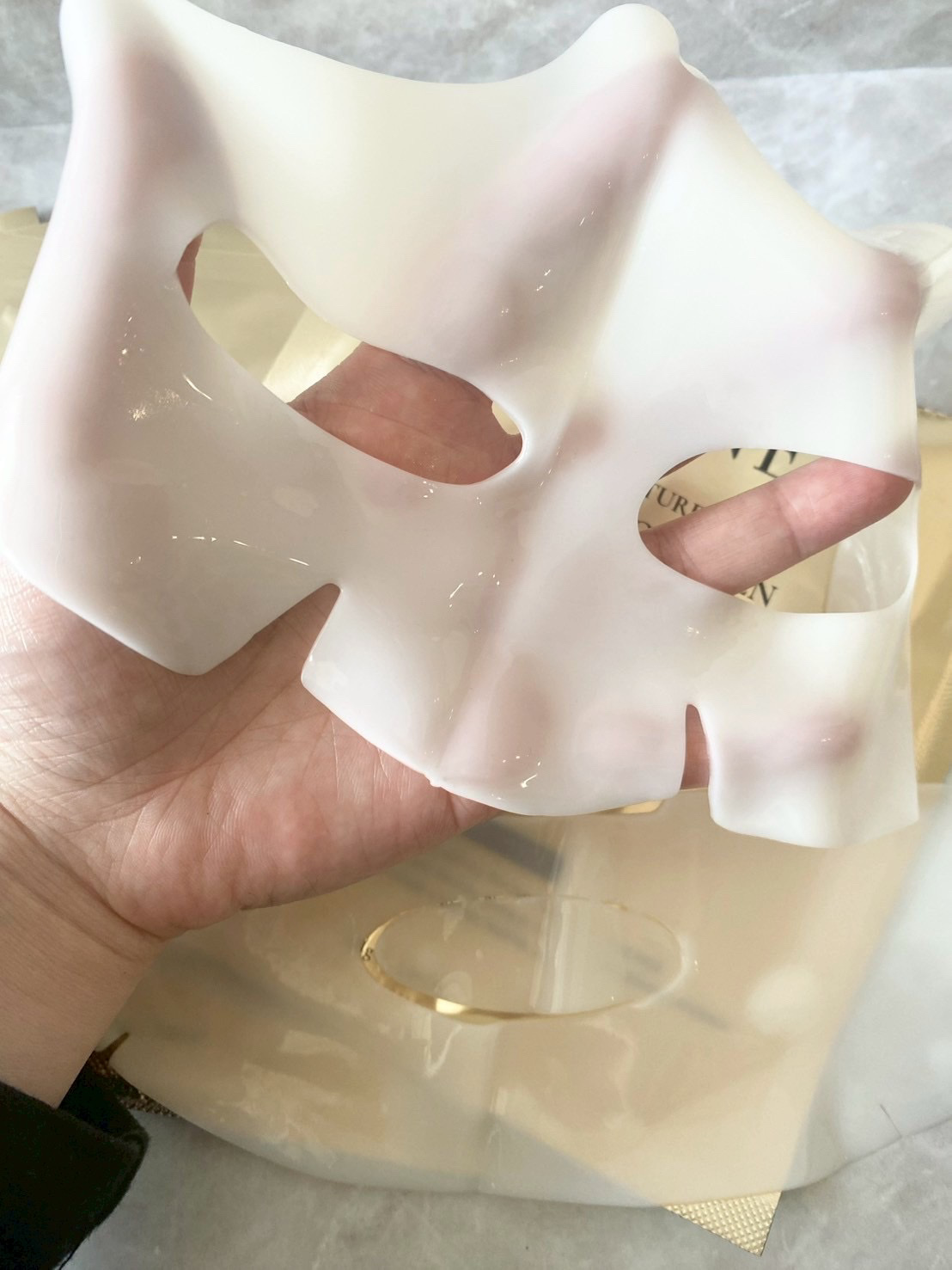 VINNEシグニチャーバイオディープコラーゲンファーミングマスク200Daの超低分子コラーゲン5,000ppm配合したパックだそう豊富な栄養の濃厚40gアンプルをそのままパック1枚に閉じ込めているんだって。厚めのぷるぷるした素材のマスクで上下...