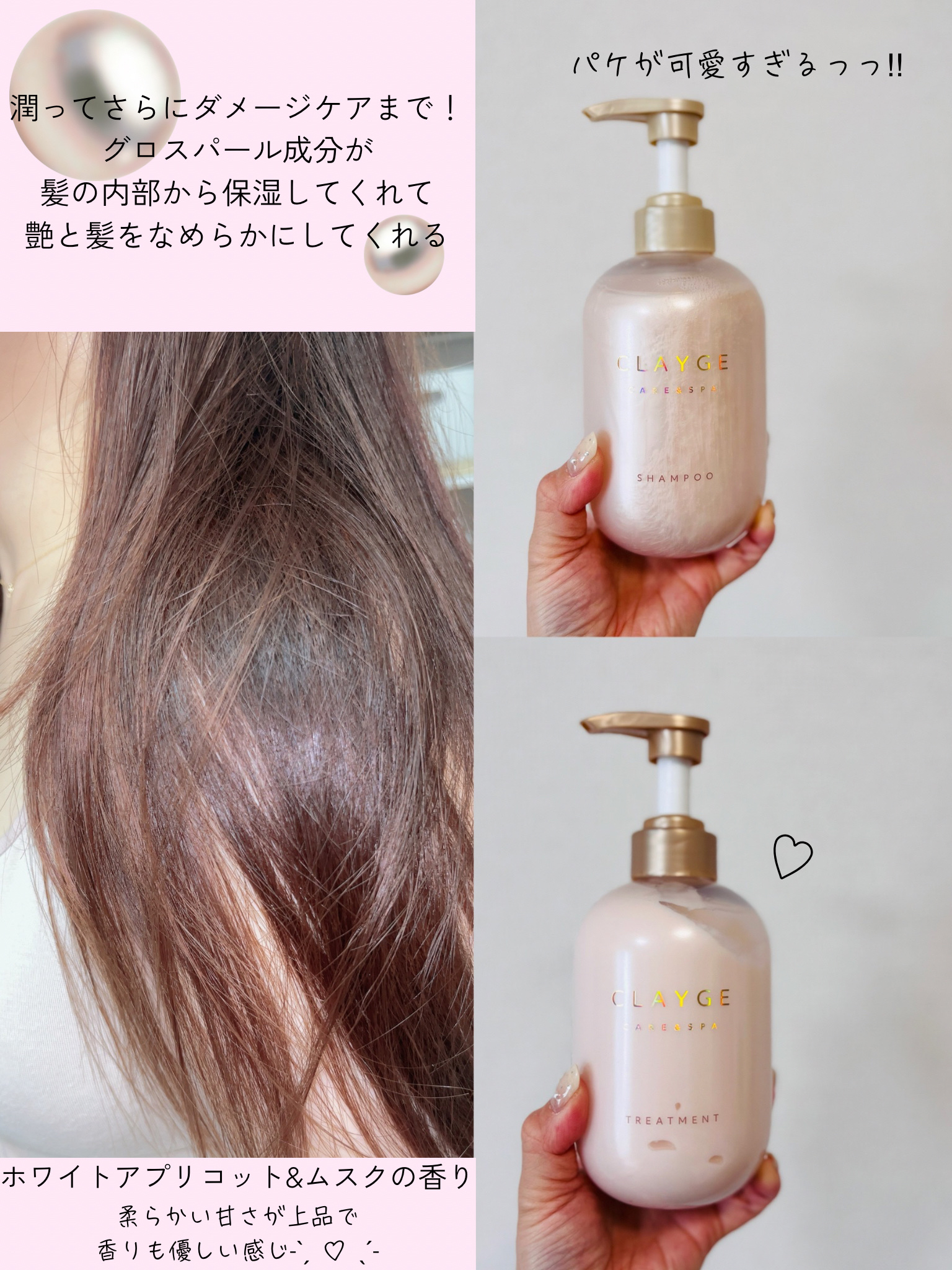 CLAYGE(クレージュ)のヘアケアラインから第3の傷んだ髪も輝くパール艶髪へ導くシャントリ【パールシャイン】🧴🫧🫧ピンクパケで可愛い🩷🩷サロン帰りかってくらい、しっとりまとまる!!ホワイトアプリコット&ムスクの香🩷サロン業界でも特に上質な洗...