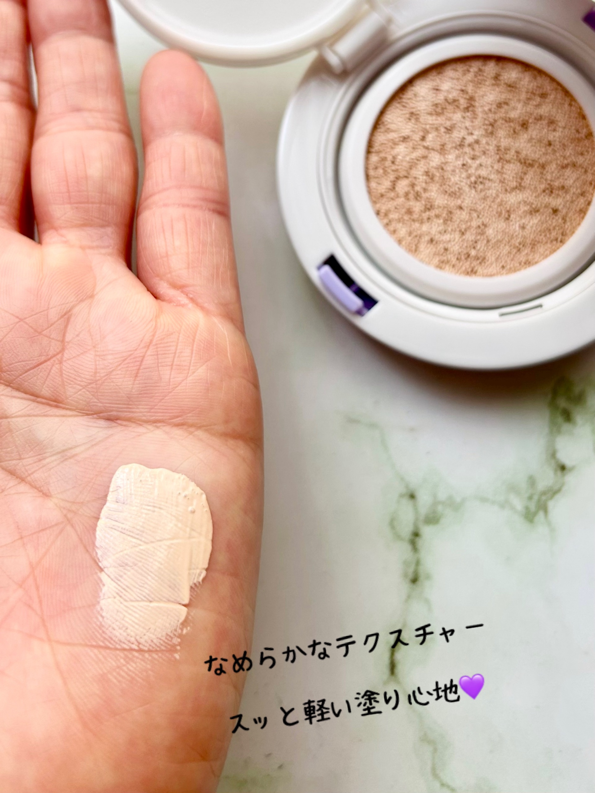 COSNORI「パンテノールバリアクッションファンデーション」✔️水分を引き寄せて保持する性質を持つパンテノール配合✔️SPF50/PA++++ (使用感)01アイボリー(19-21号におすすめ)を使用。パフにじゅわっとつく水分感のあるテクス...