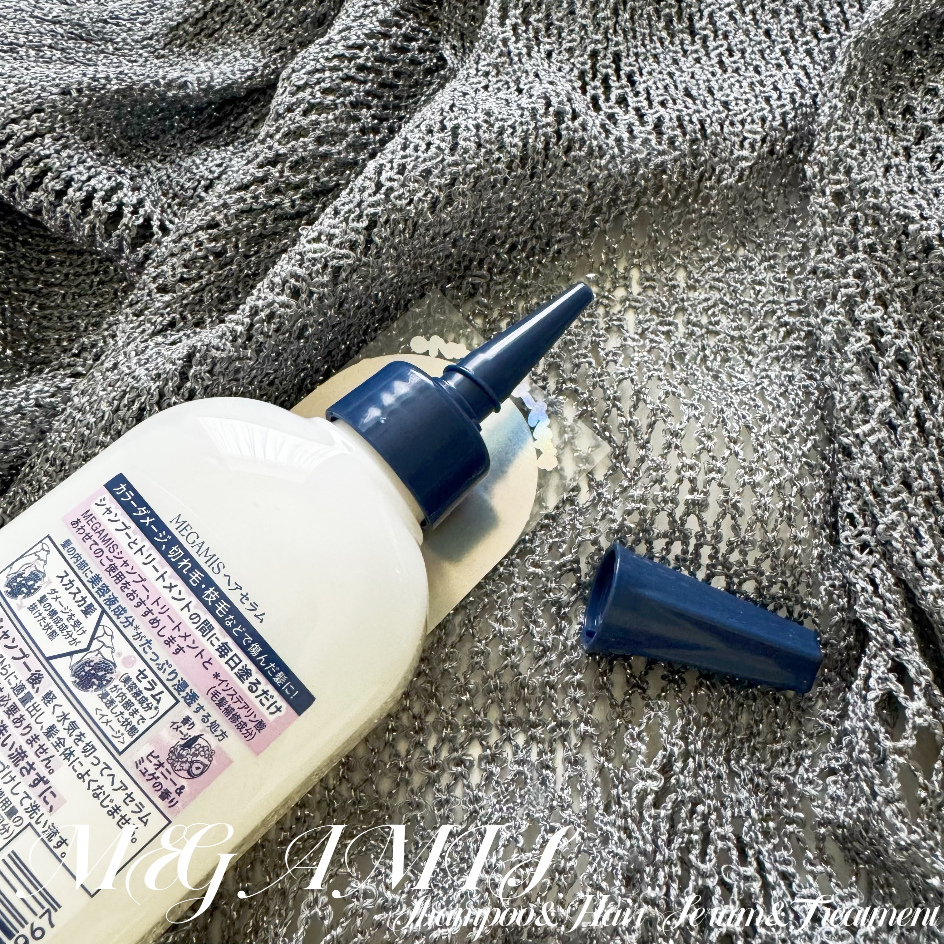 MEGAMISさまからいただきましたMEGAMISシャンプー・ヘアセラム・トリートメントをお試しさせていただきました。「ひらく」「いれる」「とじる」の3ステップヘアケア。デザインもおしゃれで特別感があります。シャンプーはしっとりしたテクスチャ...