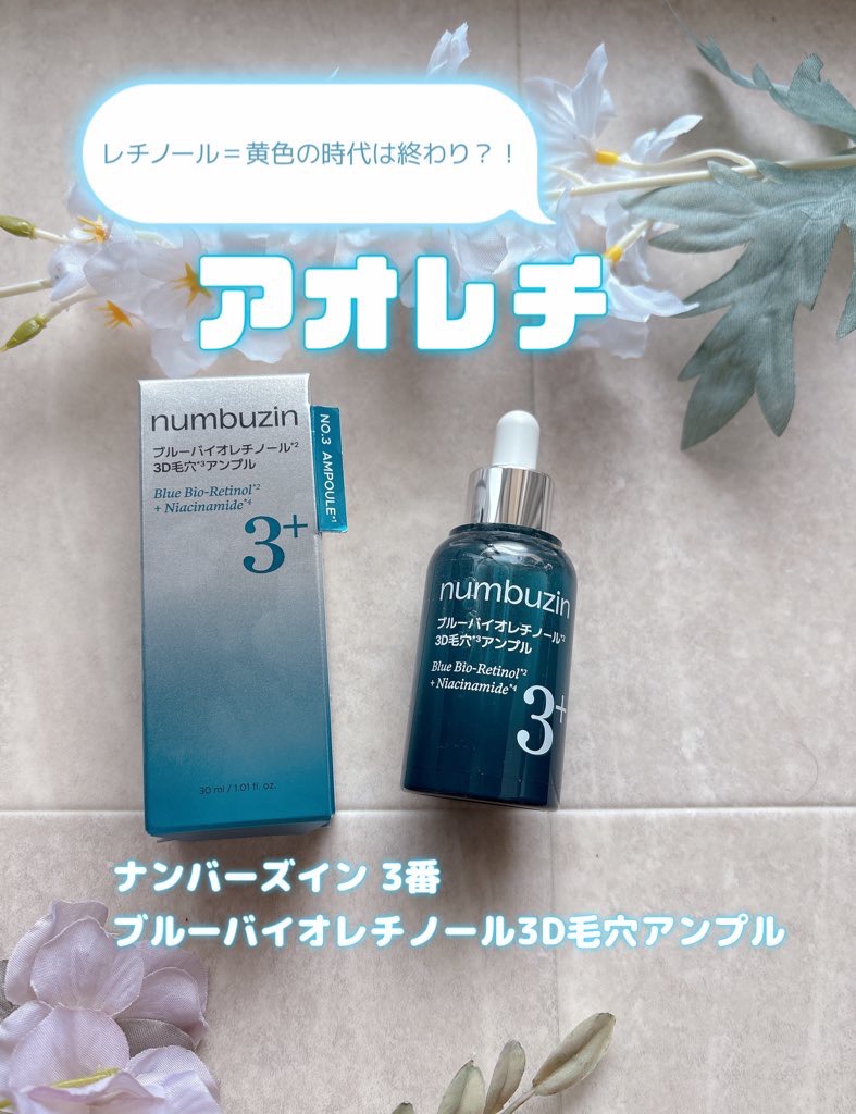 今回はレチノールアンプルのレビューです!ナンバーズイン3番ブルーバイオレチノール3D毛穴アンプルQoo10のメガポでゲットしました!黄色のレチノールよりも強力な青いレチノールの配合された美容液。レチノールは光に弱いので夜の使用がおすすめ。刺激...