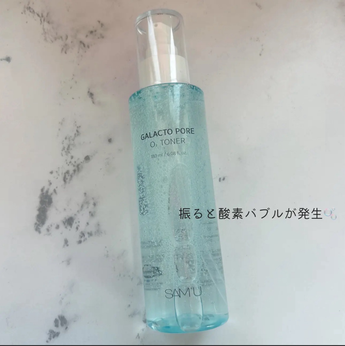 SAM'U様からいただきましたSAM'UガラクトポアO₂トナー天然酵素のガラクトミセス・ドクタミエキス・PHA成分が配合されている毛穴ケア化粧水酸素バブルで毛穴の中の老廃物をしっかりオフ使用前に振ると酸素が発生酸素バブルが毛穴の老廃物と過剰皮...