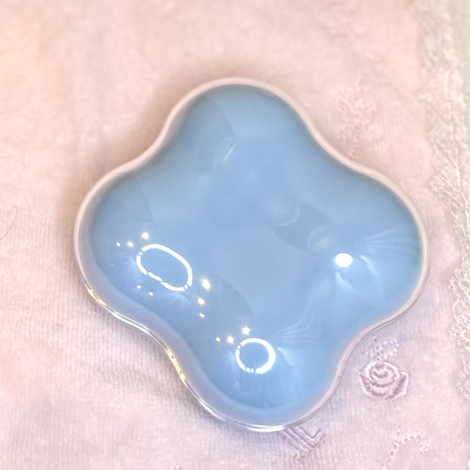 ケイトさんからなんと色付きのクッションファンデが登場🫢 肌をトーンアップさせながら気になる毛穴などをカバーしてくれるアイテムで、トーンアップタイプの化粧下地とファンデーションを合体させた感じ。 なんと!あのリップモンスターの落ちにくい技術を応用してて、肌の水分蒸発に反応してジェル膜を形成!! カラーは全3色展開で、私がゲットしたのはしっかり透明感が出るラベンダーカラー☃️ 肌に塗布してみると本当に自然なトーンアップ効果で白浮きなし。 カバー力は薄くつけると自然なんだけど、重ね付けすると気になる部分はカバーできるよ。 化粧下地とファンデの合体系とは言ったんだけど、個人的に最初に下地を仕込んだ方がきれいな状態がキープできて、肌表面もつるんとするよ🥚 肌なやみやなりたい印象によってカラーを選べるから気になる人はチェックしてみてね🫶