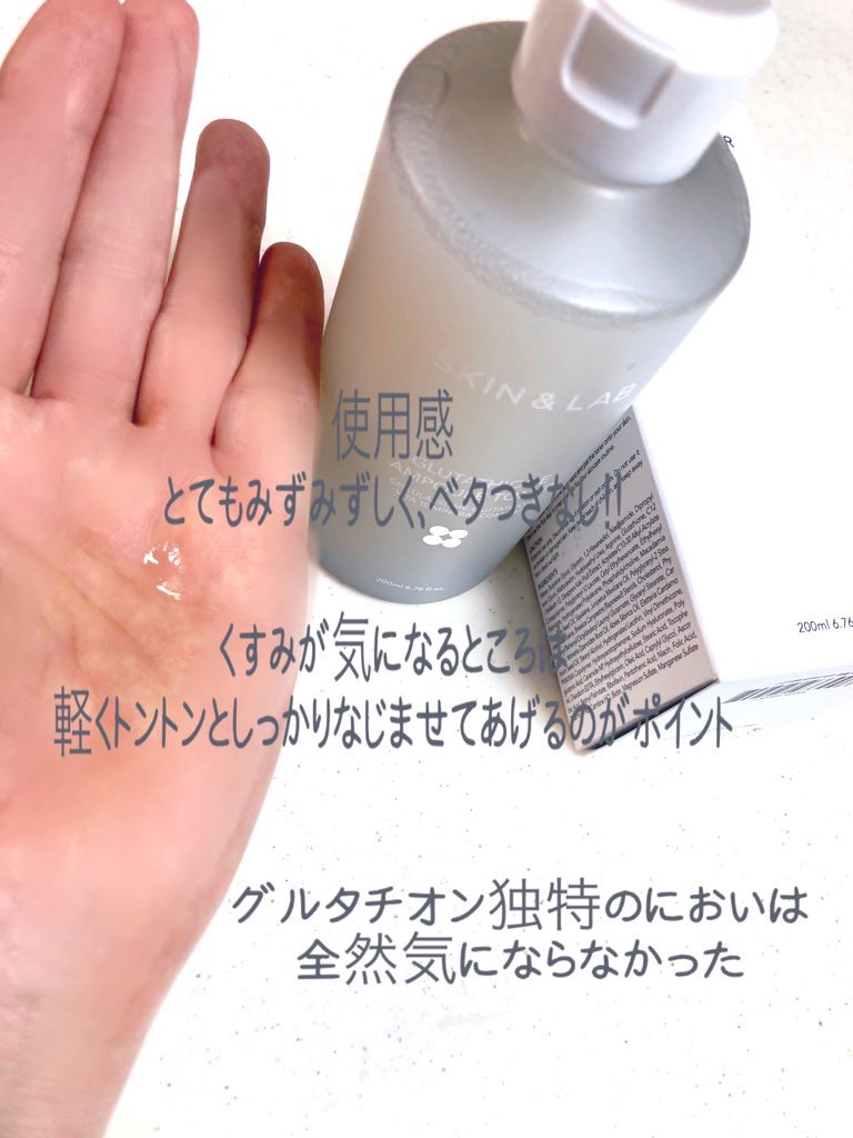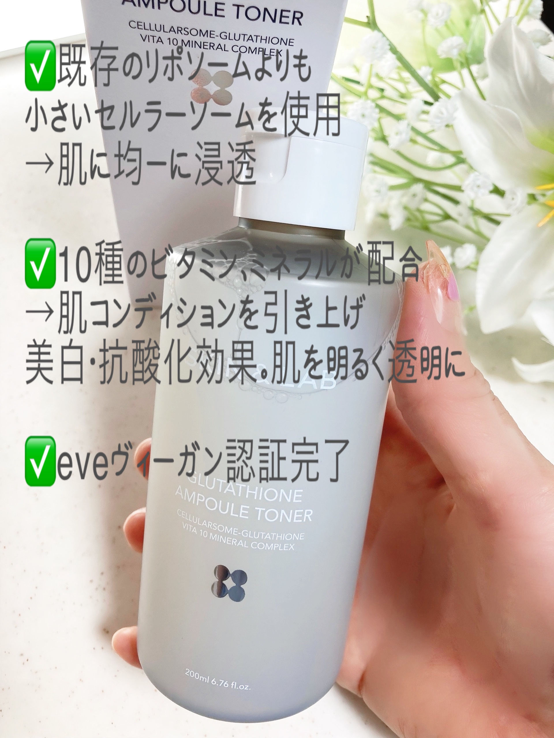 SKIN&LABグルタチオンアンプルトナー高純度99%の純粋グルタチオンマルチビタミンミネラルコンプレックス10種類のビタミンとミネラルなど配合乳白色のややトロミよあるテクスチャーベタつきはそこまで気にならず使いやすい🙆♀️既存のリポソーム...