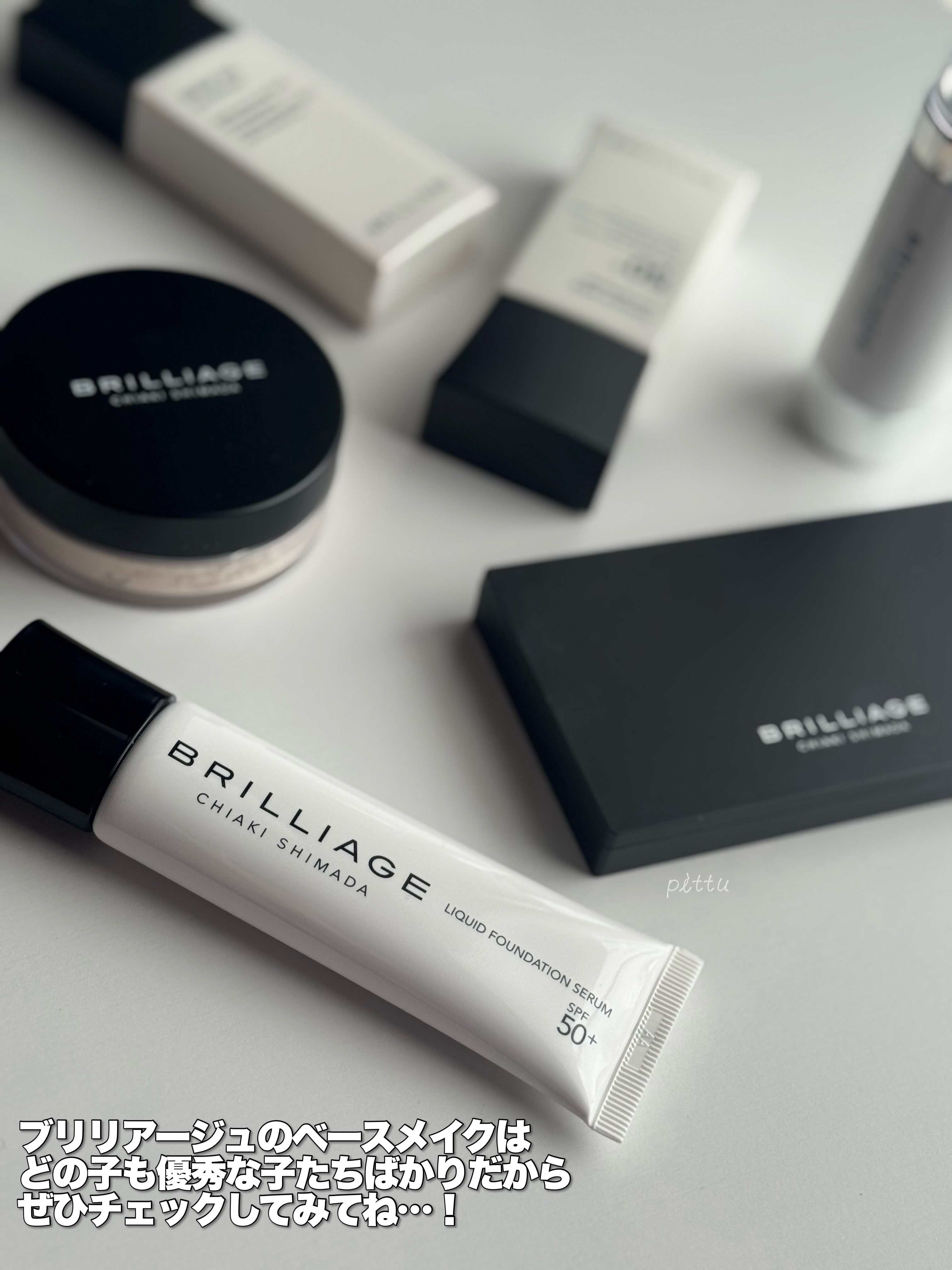 BRILLIAGE新作セッティングリキッドファンデーションセラムSPF50+/PA++++ハリ・ツヤ・素肌感がこの1本で。2022年から試作を繰り返し"今らしい質感"に仕上げた新作のリキッドファンデーション伸びが良くてスルスル塗れるから手で塗...