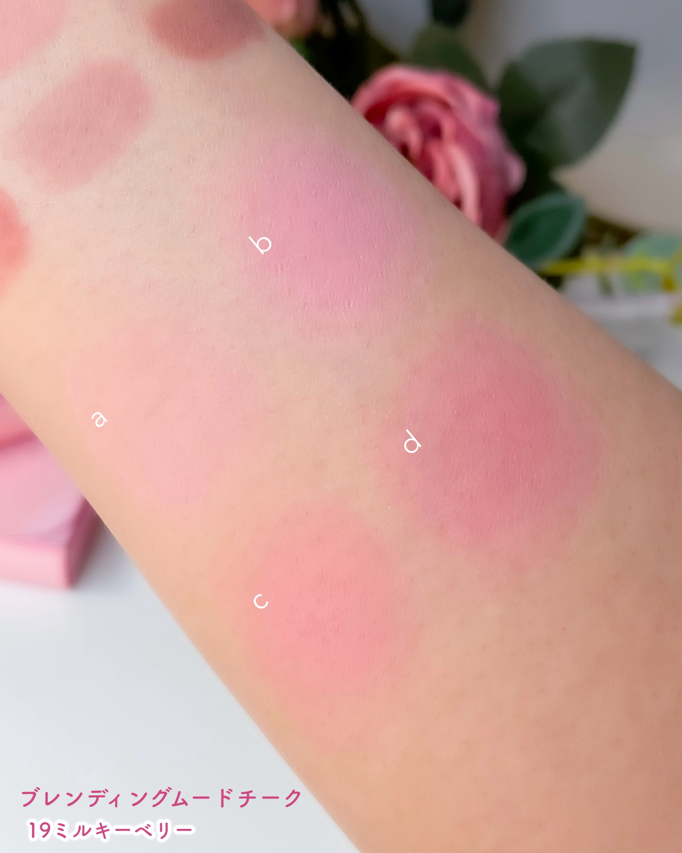 粉質が柔らかく、肌当たりが優しい♡ 手で触ってみて人気なのが分かる! しっとりとしたような柔らかさで肌に密着して溶け込むような発色。 発色は強くなく、透明感のある発色なので ふんわりと血色感が出せる♡ 大人の上品な血色感で、透明感もでて ツヤのある綺麗な肌に仕上がります😌ꕤ