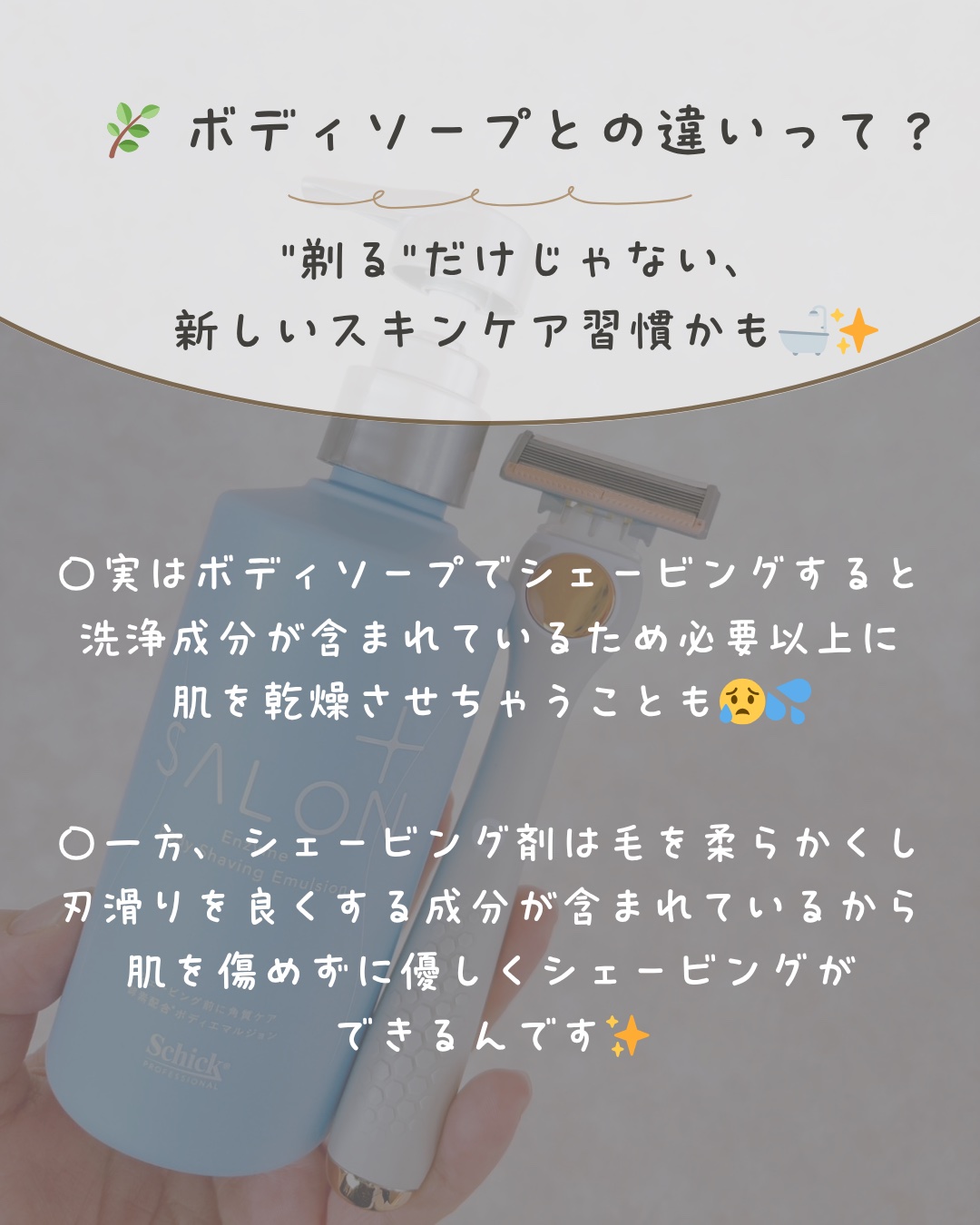 シックの新作がとてもよかった🥹💓 ᡣ𐭩ボディシェービングで【角質ケア】ができる 新製品が発売! W酵素配合(※1)のシェービング剤で肌と毛を柔らかくし、角質ケアをサポート ᡣ𐭩女性史上初(※2)6枚で角質ケアしてトーンアップ(※3) なめらかな剃り心地で洗い流したあともつっぱることなく、あと肌感がとてもよかった🙌🏻