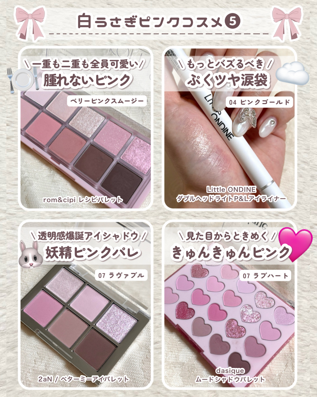 「いちごミルク」みたいな可愛さのコスメをまとめてみたよ🍓🍼✨今話題の【いちごミルクコスメ】は、ふんわりピンクとミルキーな発色で、一瞬で美少女感アップ!ふわふわなアイシャドウ、血色感たっぷりのチーク、うるうるリップまで、全部が「かわいい」の魔法...