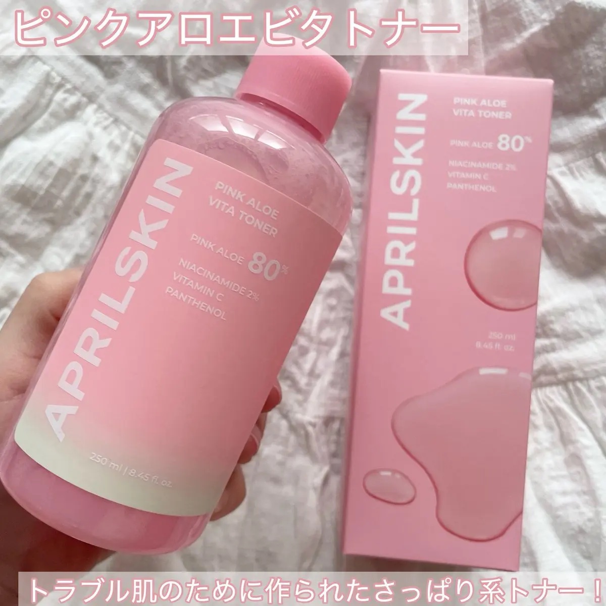 ピンクでかわいいトナー♡ とんがりキャップが付属されていて、付け替えて使うよ𓂃◌𓂂 このトナーはそんなピンクアロエを80%も配合している🌿𓂃◌𓈒𓐍 トナーなのにまるでエッセンス級⟡.· トラブル肌・敏感肌におすすめなので夏の日焼けしたお肌のクーリングにじゃぶじゃぶ使いたい!