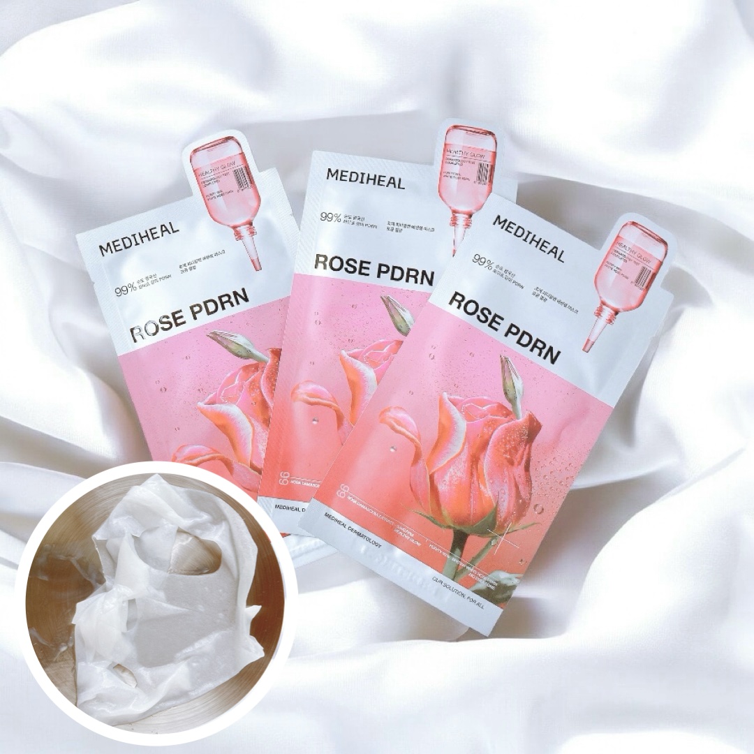 ...このPDRNシートパック使用感が凄い好き〜🫶💓mediheal『ローゼPDRNエッセンシャルマスクポアツヤ』効果:保湿、毛穴改善、肌キメケア 乾燥による肌荒れ☑︎純度99%イギリス産ローズPDRN配合☑︎毛穴の面積・密度・深さ・数が...