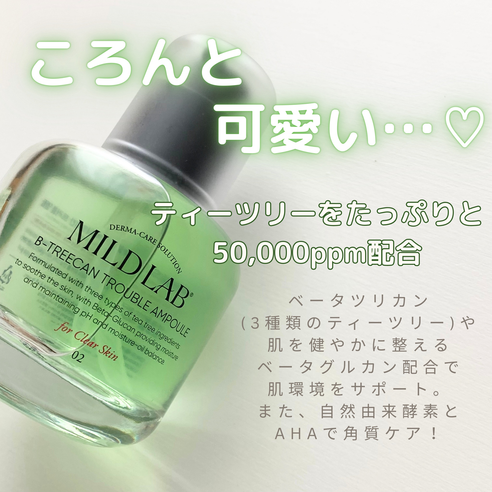 #PRMILDLABさまからいただきました🤍✴︎ベータツリカン肌荒れ美容液通称みど玉美容液🌱みど玉とは、美容液の特徴であるみどりカラーとコロンとした形を合わせた名前です💚ベータツリカン:ニュージーランド原産の3種類のティーツリー(グリーンティ...