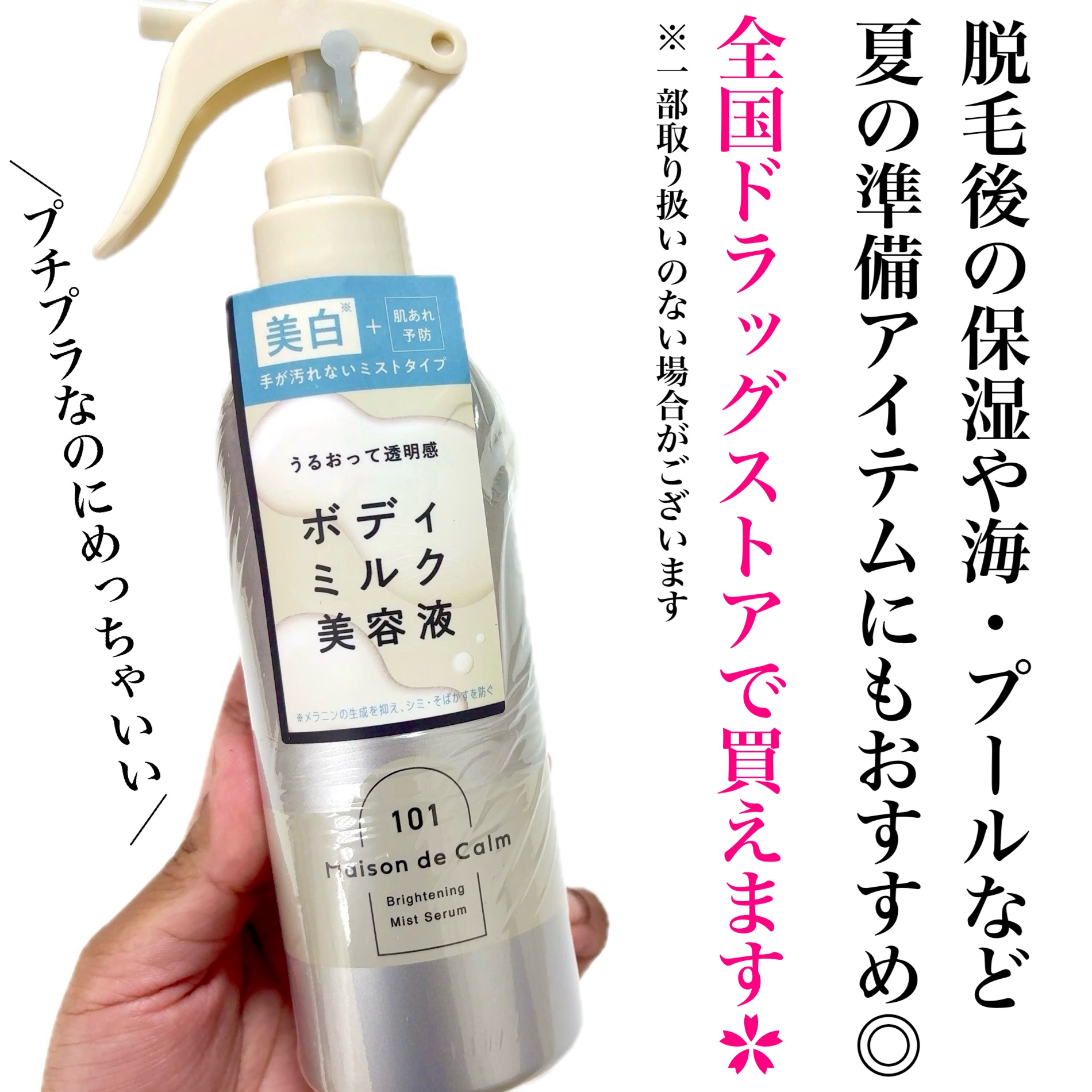 新感覚のミストタイプボディ美容液! シュッとできるので背中にも使えるし逆さにしても使えちゃいます◎ 贅沢なWの有効成分で美白+肌あれ・ニキビ予防効果も! ホワイトティーの香りがするので爽やかで心地良い使い心地も好き。