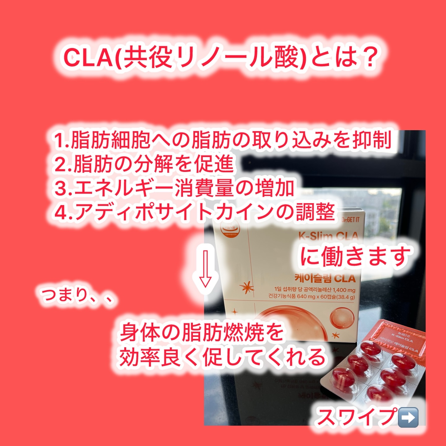 今韓国で超人気のダイエットサプリ🧡❤︎DR.GETITKスリムCLA60カプセル¥3,132(税込)※現時点でのQoo10メガポセール価格体脂肪減少の機能性が認められたダイエット成分75%高純度のドイツ製プレミアムCLAを1,400mg配合💪...