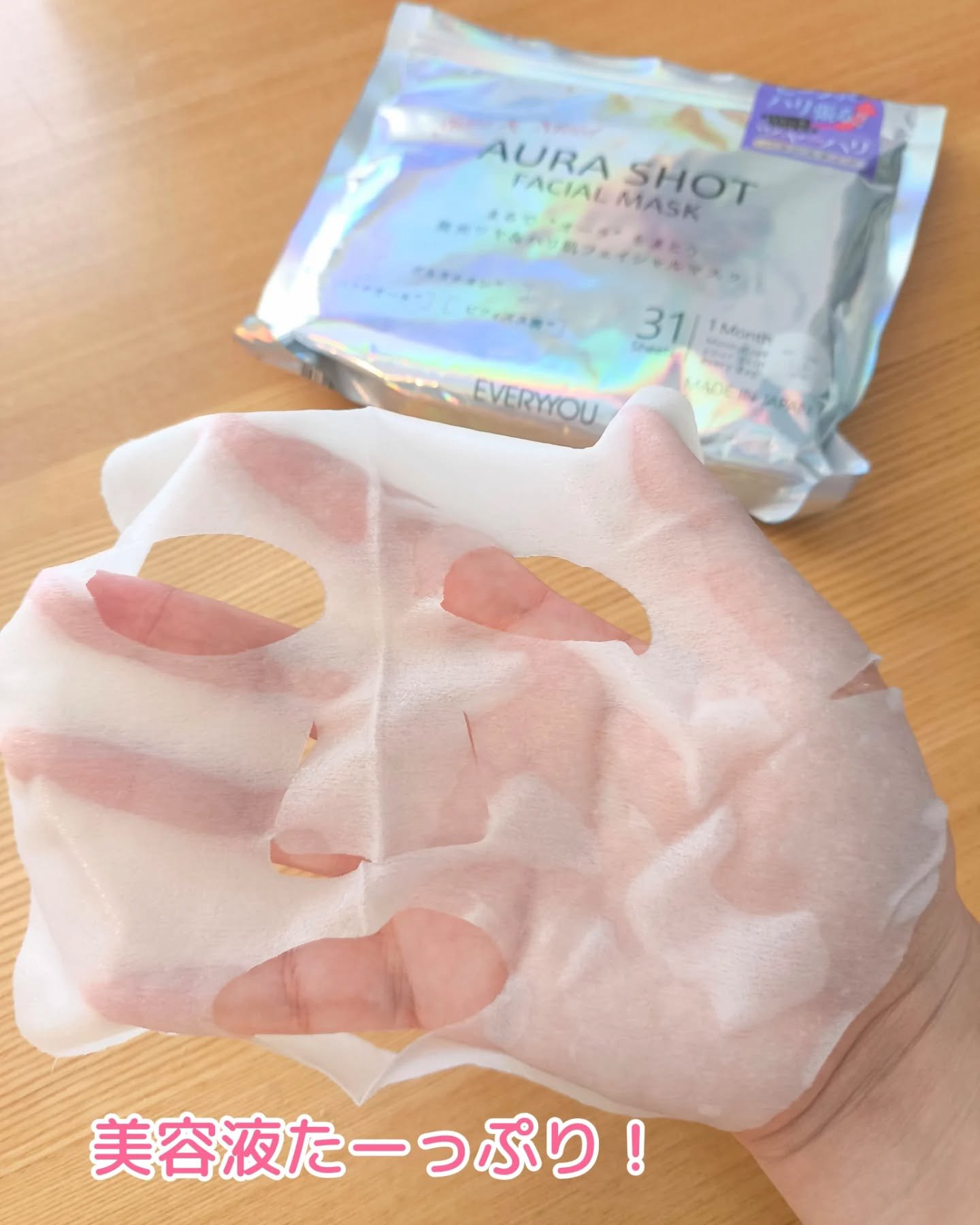 エブリューフェイシャルマスク今今回はくすみ・乾燥・ごわつきなどの悩みにおすすめな高ツヤオーラショットフェイシャルマスクをお試し♥肌印象を悩む悩みに、多方向からアプローチ。独自ブレンドの美容成分が肌のキメを整え、ツヤを仕込むように内側から発光感...